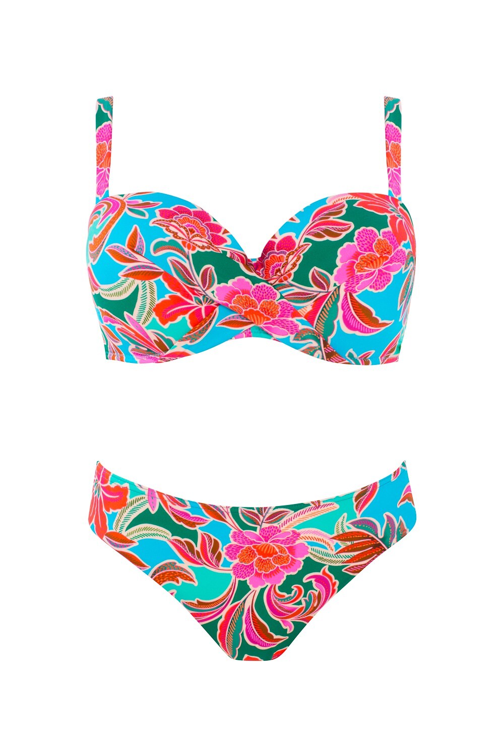 Dvoudílné plavky - barevný květinový potisk - s kosticemi, vyztužené košíčky - odnímatelná, nastavitelná ramínka - košíčky 36C/D, 38B/C, 40B/C, 42B mají odnímatelné vycpávky - nastavitelný pásek, zapínání kovovou sponou - součástí jsou kalhotky klasického střihu Složení: 85% polyamid, 15% elastan