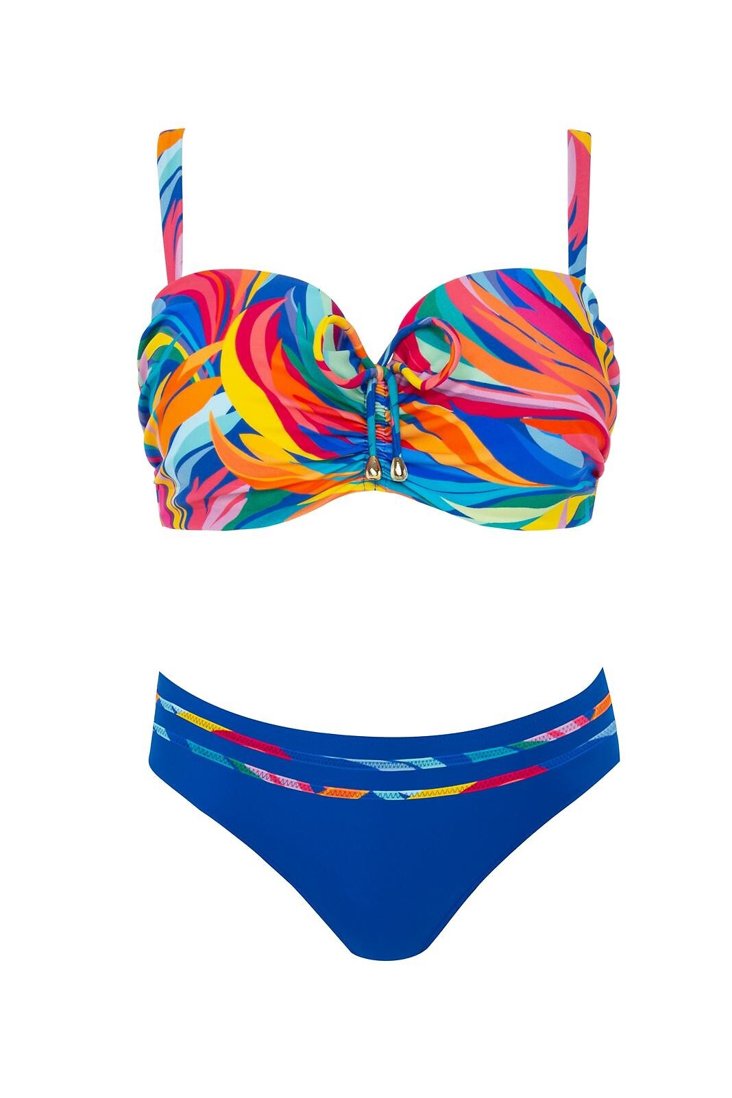 Dvoudílné plavky - podprsenka balkonet s kosticemi - vyztužené košíčky - odnímatelná, nastavitelná ramínka - pásek zapínaný kovovou sponou s regulační sponou - klasické kalhotky - vybrané velikosti 36B/C; 38B/C; 40B/C; 42B s push-up vsadkou Složení: 80% polyamid, 20% elastan