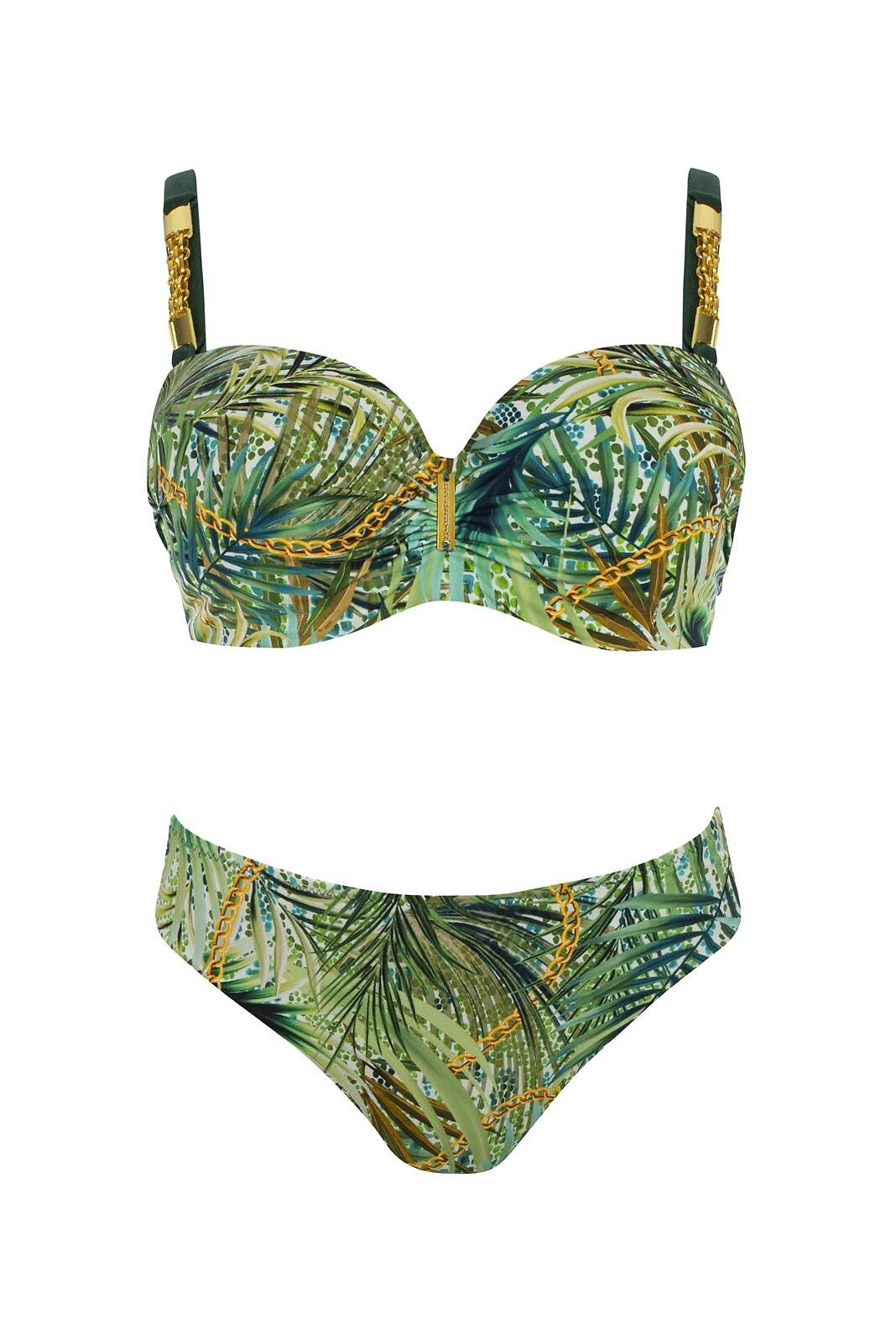 Dvoudílné plavky - s kosticemi, vyztužené košíčky balkonette - nastavitelná, odnímatelná ramínka - nastavitelný obvod, zapínání na kovový klip - klasické kalhotky součástí balení - vybrané velikosti 38B/C; 40B/C; 42B s push-up košíčky Složení: 80% polyamid, 20% elastan