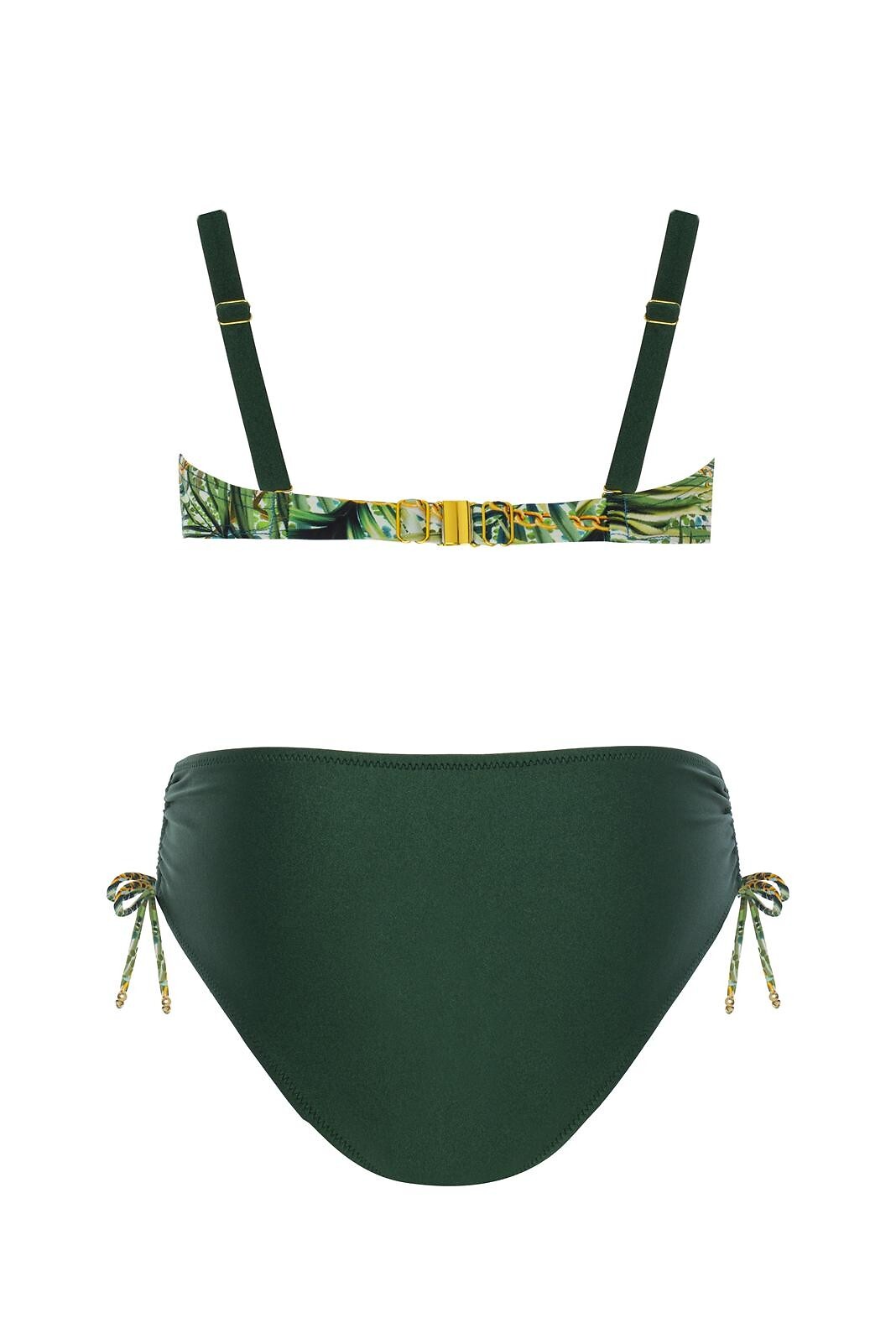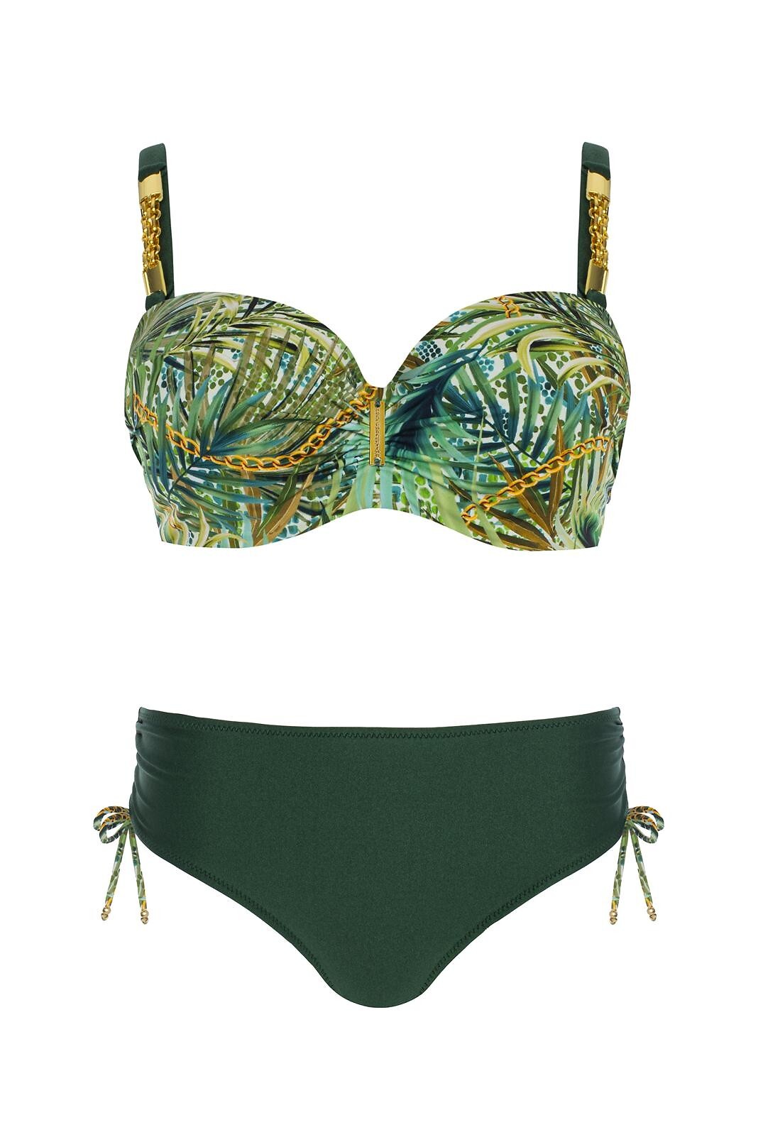 Dvoudílné plavky - s kosticemi, vyztužené, balconetkové košíčky - nastavitelná, odnímatelná ramínka, zdobené drahokamem - nastavitelný obvod, zapínání na kovovou sponu - sladěné hladké midi kalhotky - stahovací šňůrky na bocích pro nastavení boční šířky - vybrané velikosti 38B/C; 40B/C; 42B s push-up vsadkou Složení: 80% polyamid, 20% elastan