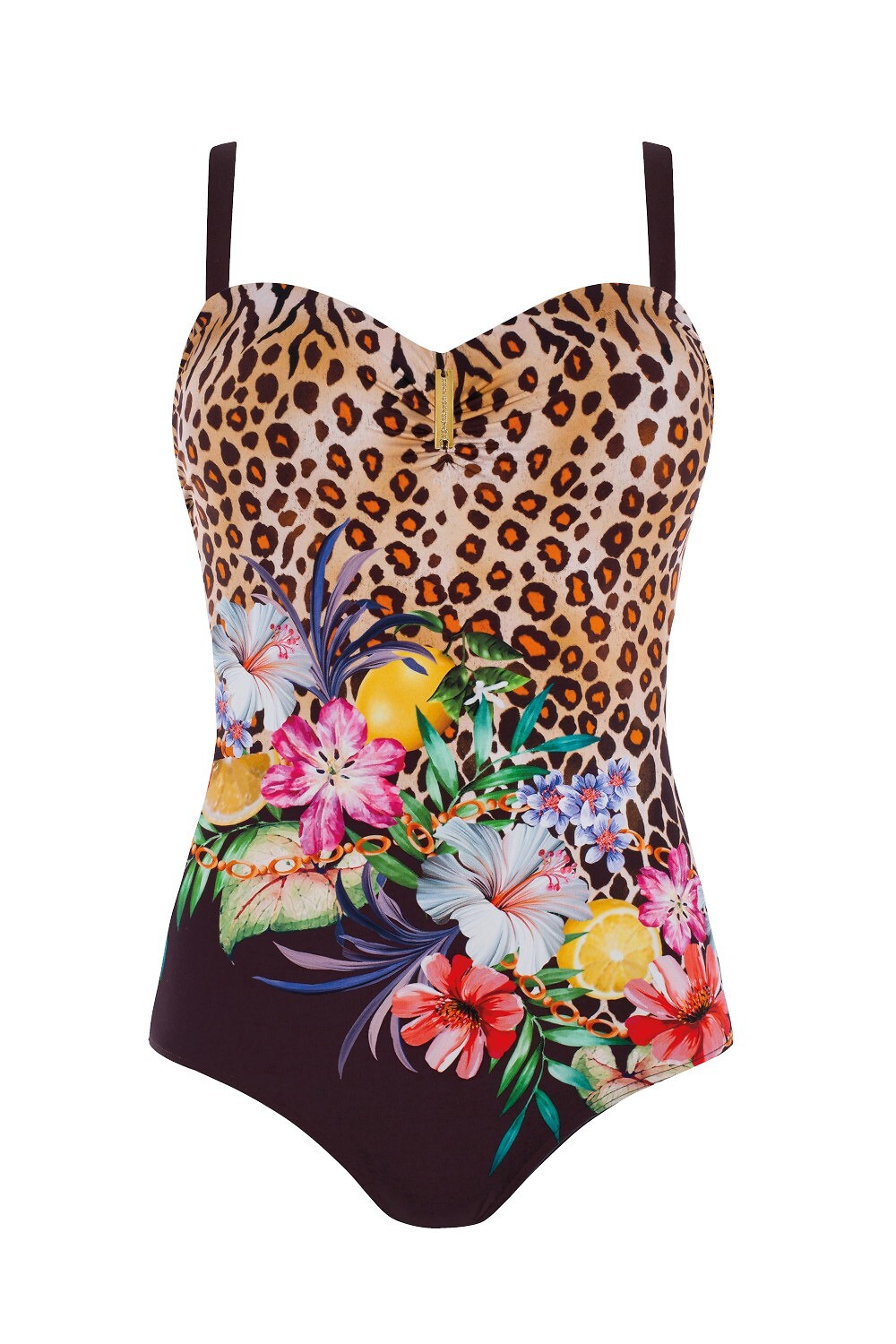 Jednodílné plavky - vyztužené, balconetkové košíčky - tvarovaná vsadka s mírným push-up efektem - nastavitelná, odnímatelná ramínka na opalování - hladká záda s výstřihem vzadu Složení: 75% polyamid, 25% elastan
