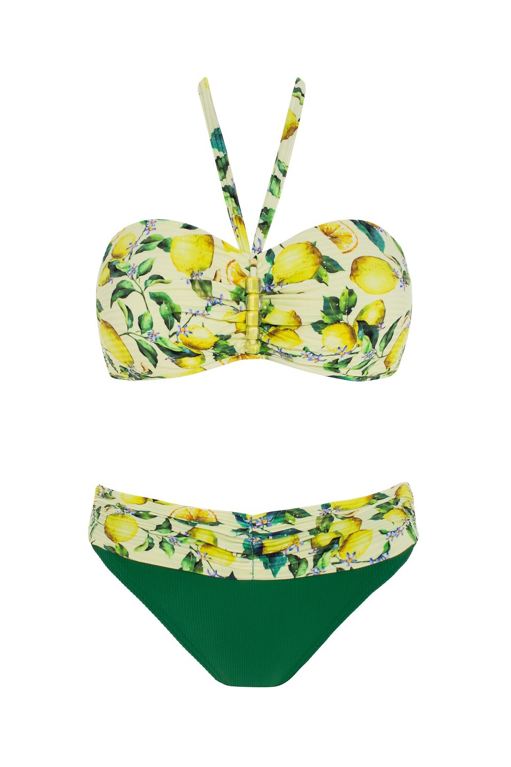 Dvoudílné plavky - košíčky s kosticemi, vyztužené košíčky - šperkový prvek mezi košíčky - odnímatelný ramínek za krk - zavazování kolem krku a v pase - jemně pruhovaný materiál - kalhotky s ozdobným páskem Složení: 88% polyamid, 12% elastan