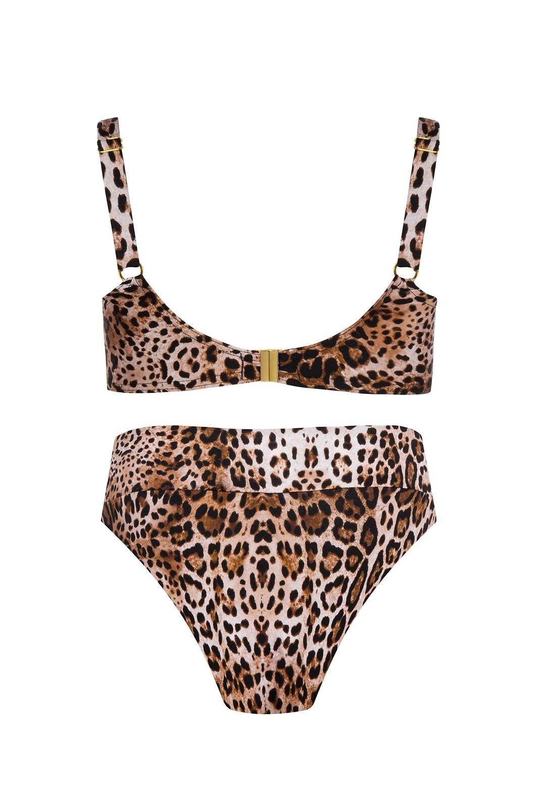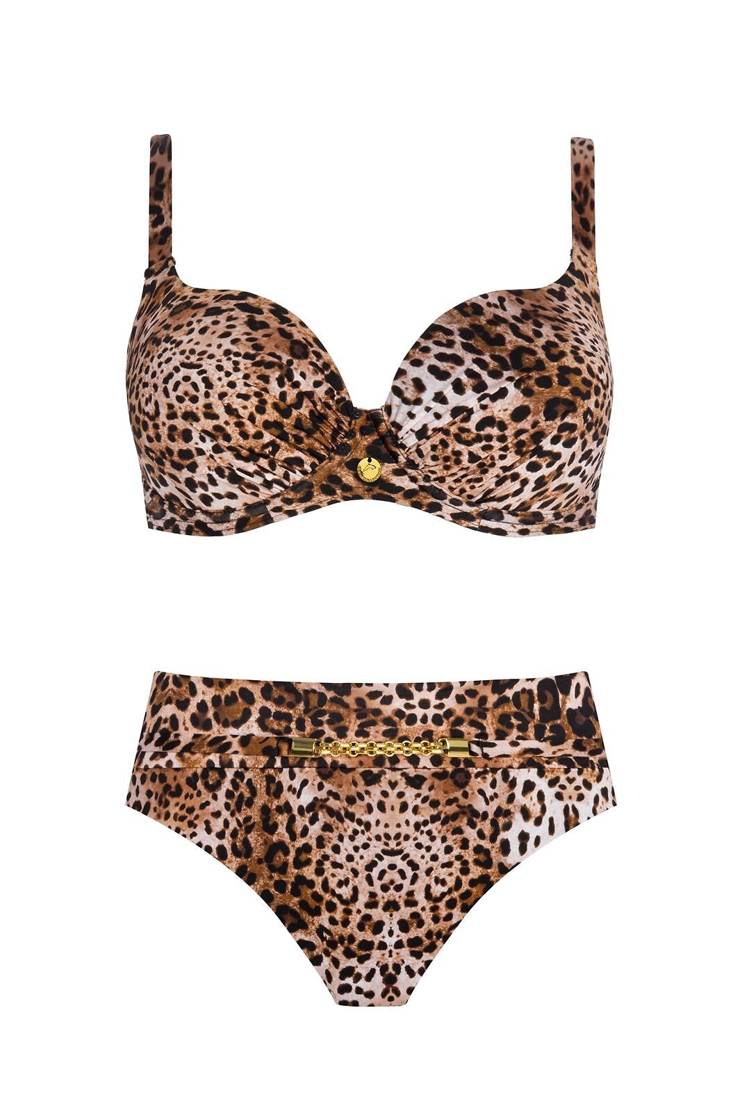 Dvoudílné plavky - s kosticemi, vyztužené košíčky - nastavitelná ramínka - zapínání na kovovou sponu - sladěné kalhotky s vysokým pasem a ozdobným prvkem - širší boky - velikost 40C push-up Složení: 85% polyamid, 15% elastan