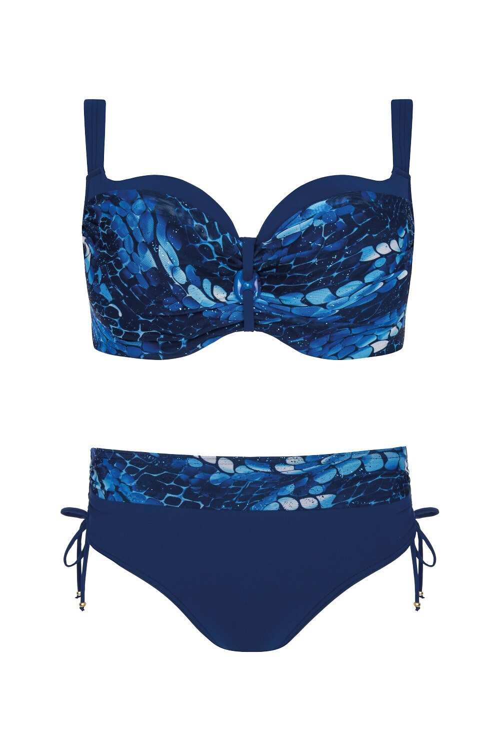 Dvoudílné plavky - plné, košíčky s kosticemi - mírně vyztužené - nastavitelná, neodepínatelná ramínka - plnější kalhotky, ozdobný pásek - stahovací šňůrky po bocích Složení: 85% polyamid, 15% elastan