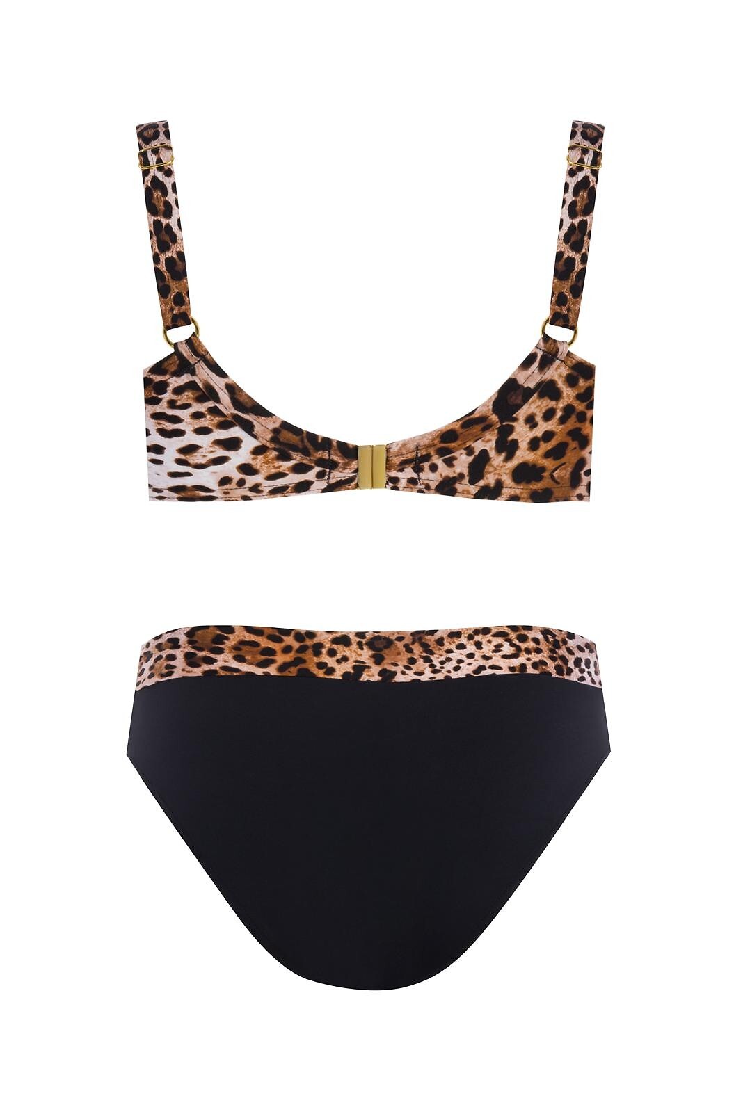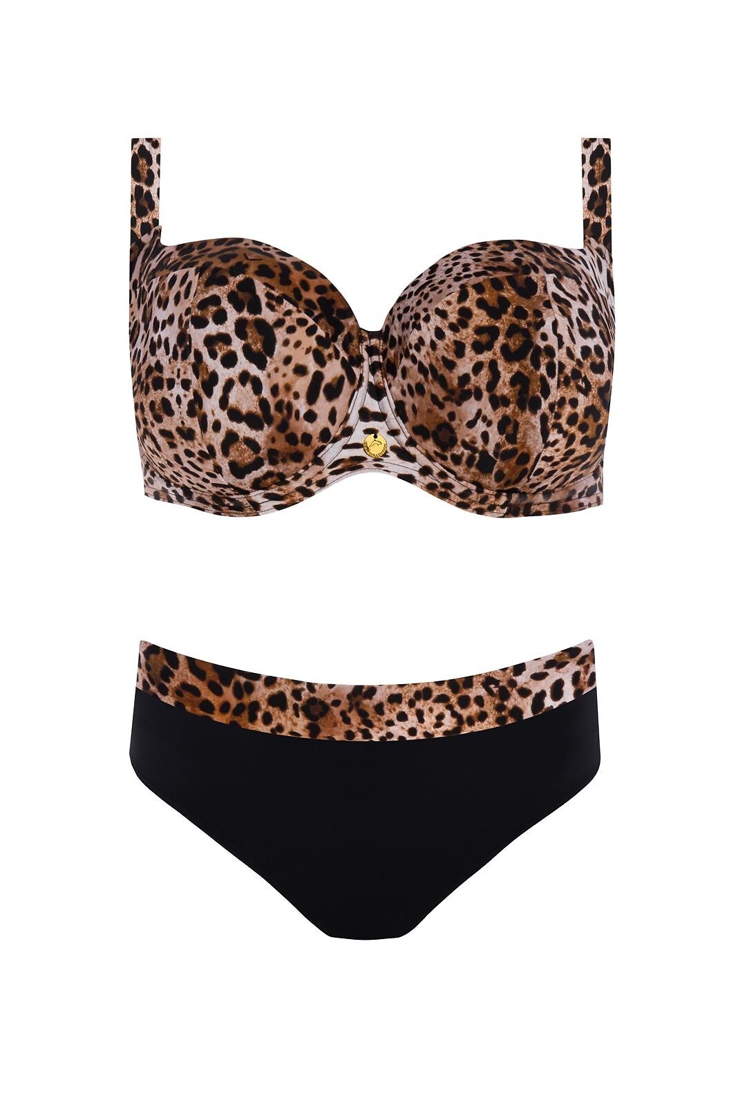 Dvoudílné plavky - plné košíčky, s kosticemi - všité košíčky - nastavitelná, neodnímatelná ramínka - zapínání na kovovou sponu - slipy ve stejném střihu s mírně širšími boky Složení: 80% polyamid, 20% elastan