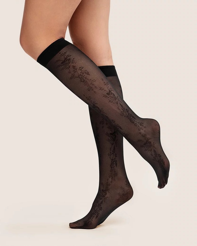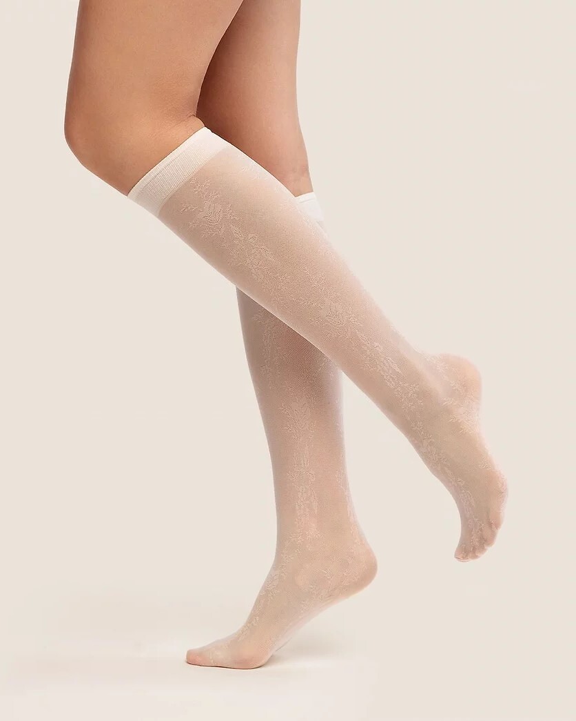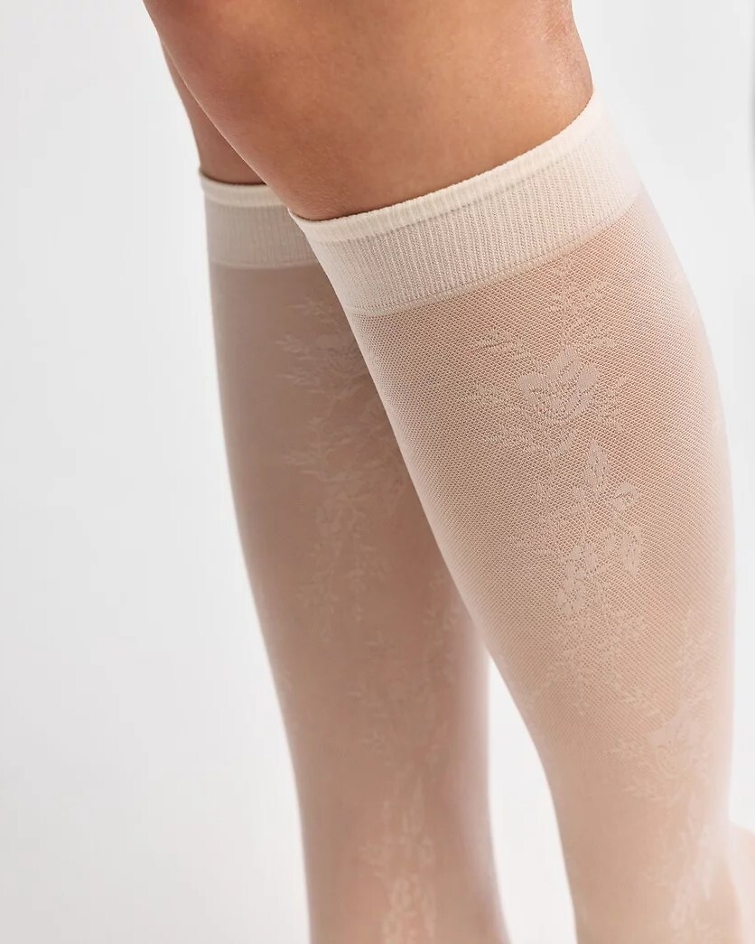 Tenké dámské podkolenky - zdobené poutavým vzorem - nekompresní manžeta - bez výrazných výztuh na prstech Složení: 85% polyamid, 15% elastan