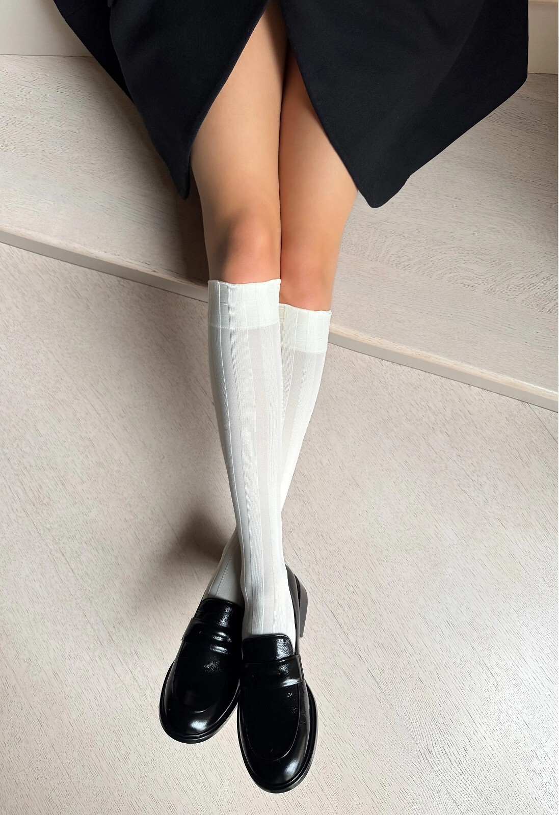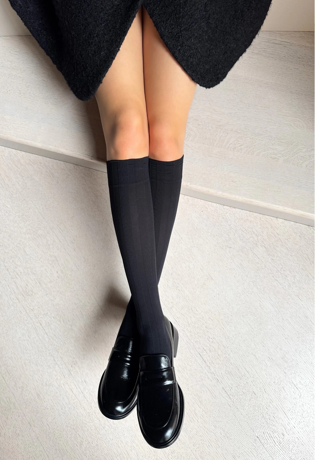 Dámské podkolenky - vysoce kvalitní mikrovlákno - nekompresní manžeta - zdobené vzorem se širokými pruhy Složení: 93% polyamid, 7% elastan