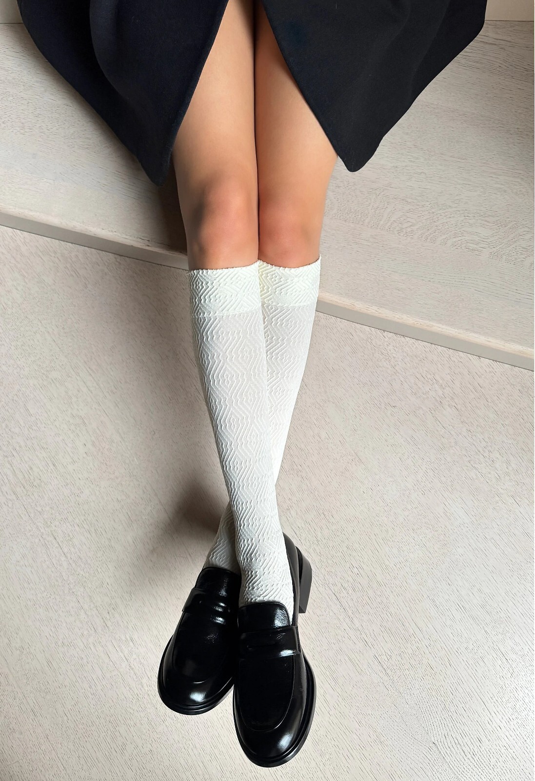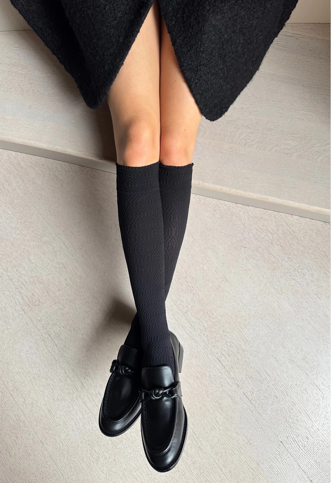 Dámské podkolenky - vysoce kvalitní mikrovlákno - nekompresní manžeta - zdobené diamantovým vzorem Složení: 95% polyamid, 5% elastan