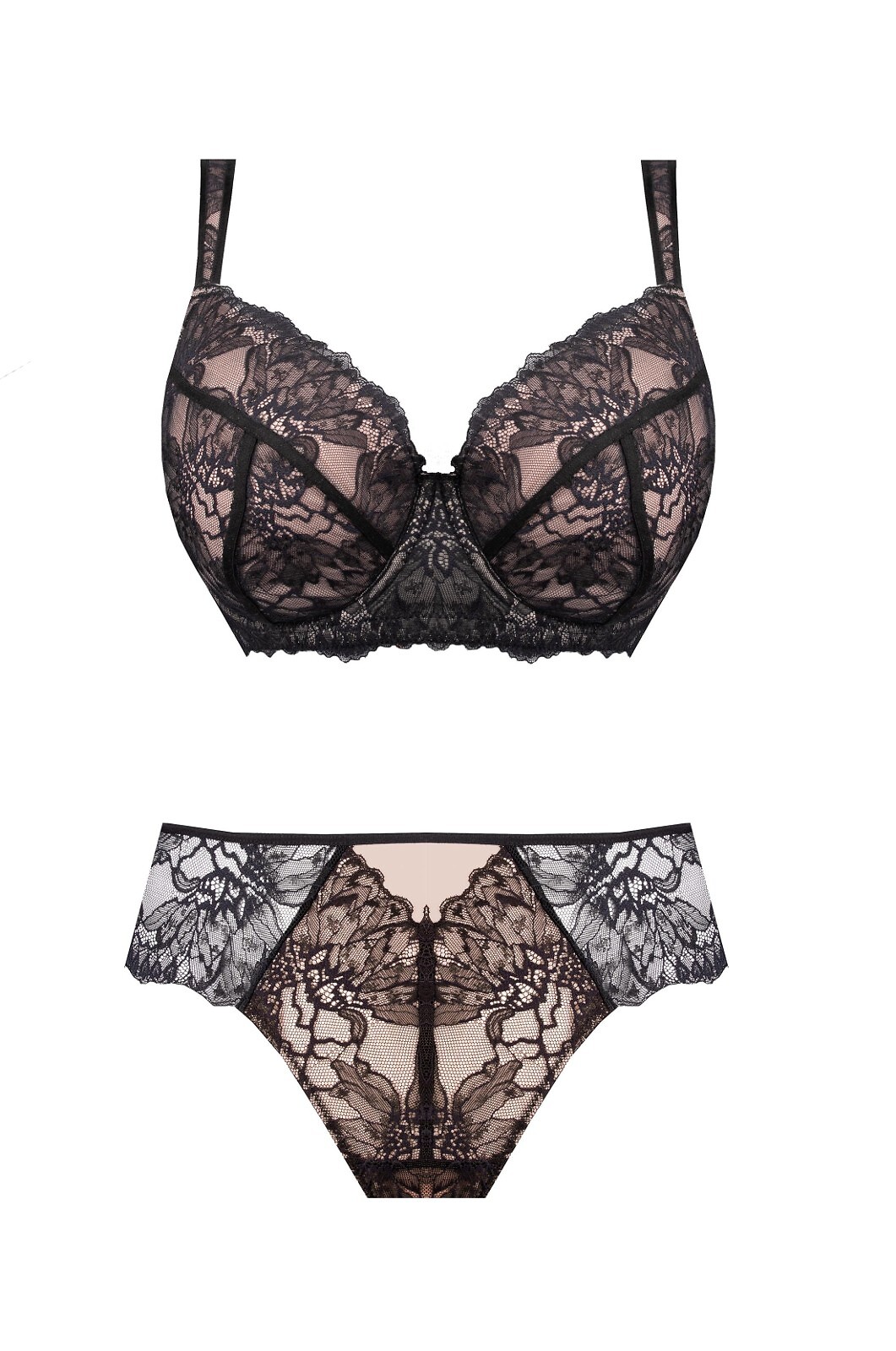 Podprsenka s plnými košíčky - košíčky z černé krajky s tělovou podložkou - košíčky podšité měkkou pěnou, podšité bavlnou - boky ze stabilní síťoviny, bez boční kostice - neodepínatelná, nastavitelná ramínka - spojení košíčků zdobené šperkovým prvkem - model dokonale sbírá a zvedá poprsí Složení: 59% nylon, 32% bavlna, 9% elastan