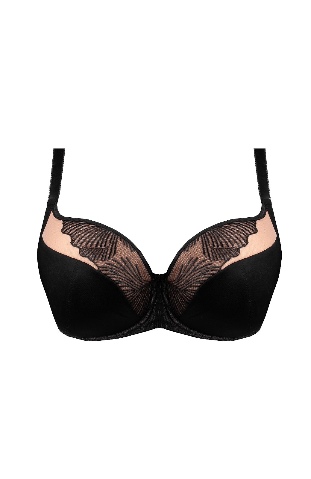 Podprsenka s plnými košíčky a kosticemi - košíčky z černého mikrovlákna - horní linie z béžové síťoviny zdobená poutavou výšivkou - uvnitř podšitá bavlnou - nastavitelná, neodnímatelná ramínka - pás ze stabilní síťoviny, bez boční kostice - zapínání na dva háčky s třístupňovým nastavením - model dokonale zvedá a podpírá poprsí Složení: 83% polyamid, 12% elastan, 5% bavlna