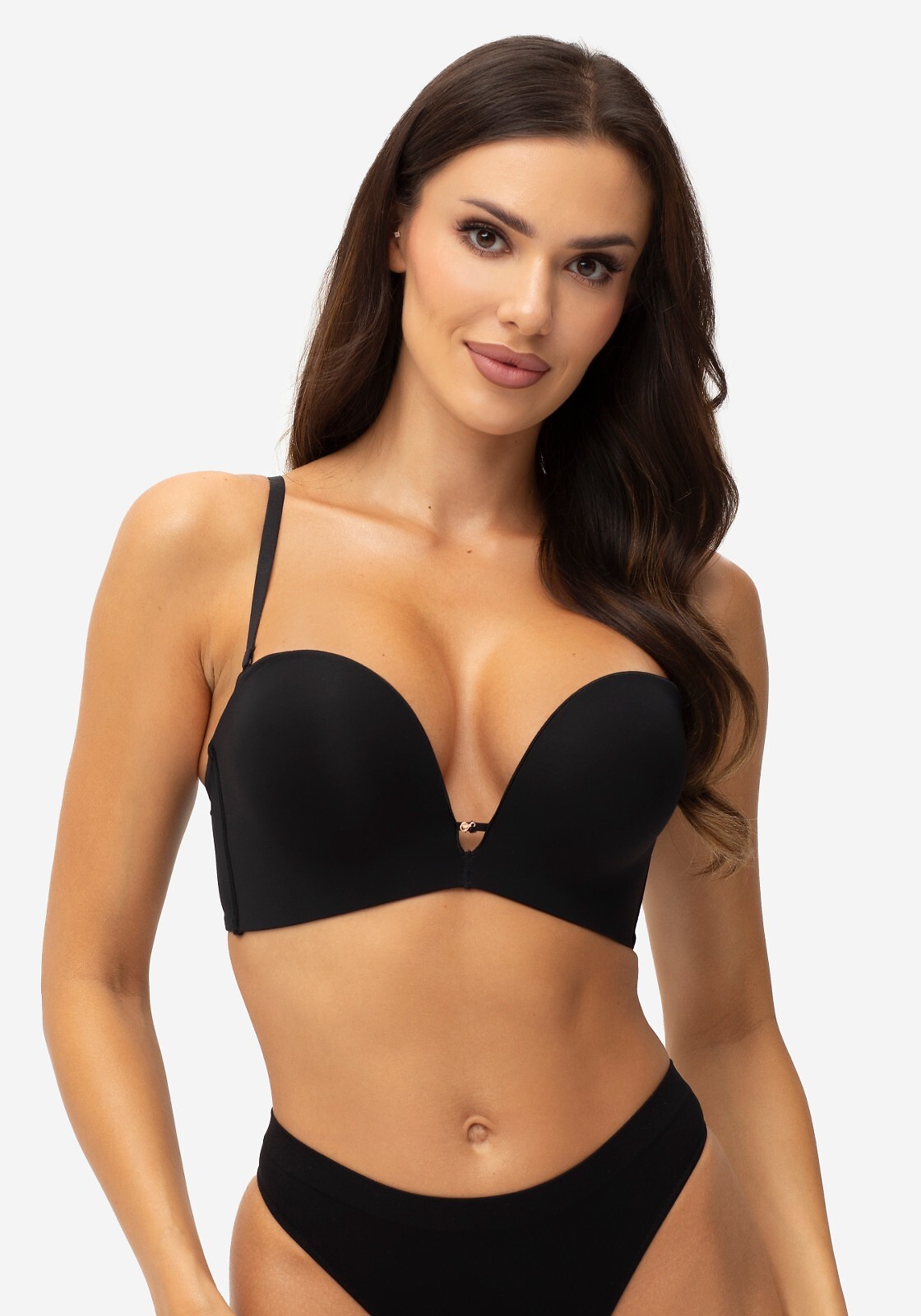 Podprsenka Joyce Double Push-Up - působivá push-up podprsenka ve tvaru polokorzetu - určena pro ženy s malými a středně velkými poprsí - tepelně tvarované košíčky - hluboký výstřih nabírá a tvaruje prsa pro hluboce vykrojené střihy a vytváří tak větší efekt - jemný, hladký materiál je pod oblečením neviditelný - odnímatelná, nastavitelná ramínka - hladké boky vyztužené svislou kosticí - zapínání na tři háčky ve třech polohách Složení: 85% polyamid 15% elastan