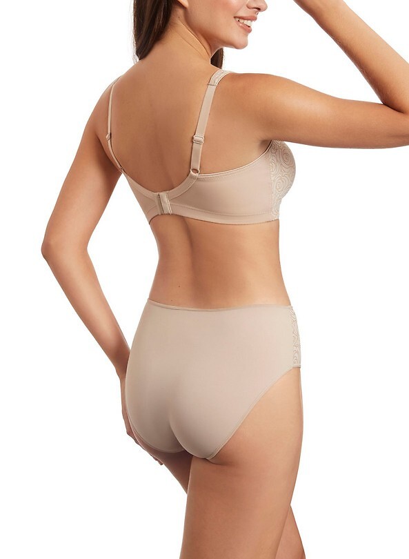 Měkká podprsenka, bez kostic - košíčky s reliéfním vzorem - vnitřní strana z příjemné látky - širší ramínka s regulací - pásek z hladkého mikrovlákna, bez boční kostice - dvojité zapínání na háčky se čtyřstupňovým nastavením obvodu Složení: 82% polyamid, 18% elastan