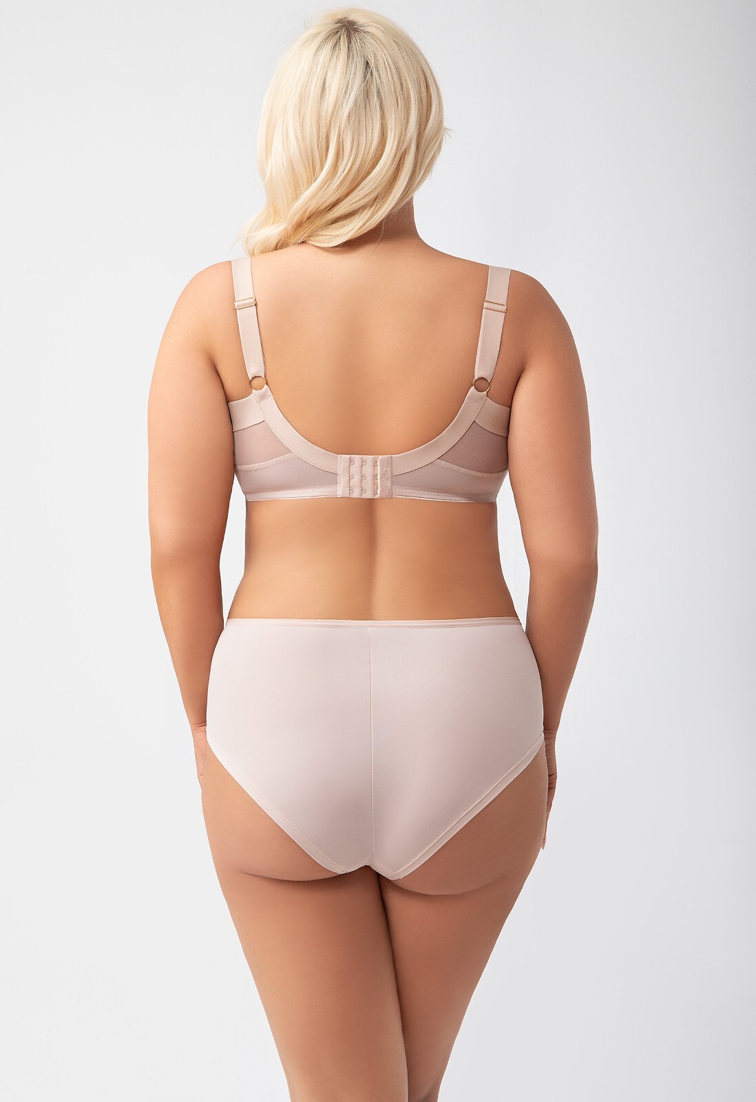 Měkká podprsenka s kosticemi - pro ženy se středním, velkým a velmi velkým poprsím - košíčky z lesklé látky - průhledná síťovina v horní části - výrazná zlatá přezka ve tvaru V u spojení s kosticemi - stabilní pás se svislou kosticí - zvýšený můstek - šířka ramínek v závislosti na velikosti (14, 18, 22 mm) - třístupňové nastavení pásu pomocí dvou nebo tří háčků - zadní část zakončená širokou, měkkou gumičkou v horní části - model stahuje poprsí dovnitř a dokonale ho zvedá Složení: 90% polyamid, 7% elastan, 3% polyester