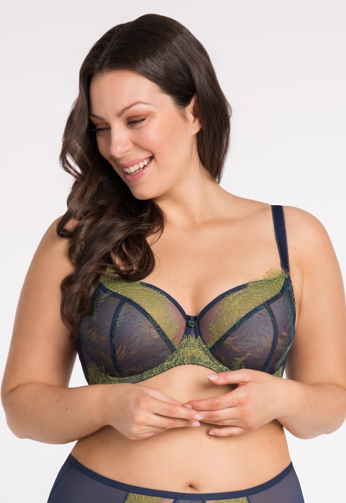 Měkká podprsenka určená pro ženy se středním, velkým a velmi velkým poprsím - poskytuje velmi silný efekt zvednutí a centrování - třídílné košíčky z tylu s potiskem na stabilním tylu - horní okraj košíčků plynule přechází do ramínek pro lepší oporu poprsí - boky, basque a horní části košíčků s stabilní krajkou v kontrastní barvě - záda z průhledné Lycry pro velmi dobré padnutí a oporu - boční kostice zabraňují srolování materiálu - v závislosti na velikosti dvouřadé nebo třířadé zapínání na háčky s třístupňovým nastavením obvodu - neodepínatelná, nastavitelná ramínka ve třech šířkách - vícebarevné kovové prvky - design K 496 Složení: 90% polyamid, 7% elastan, 3% polyester
