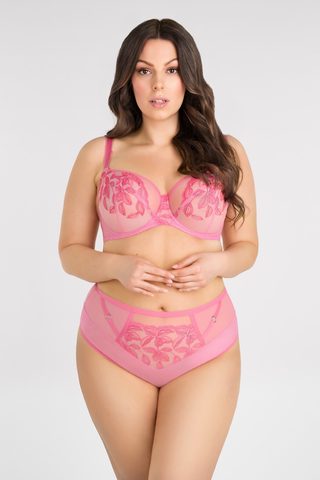 Měkká podprsenka s kosticemi - poskytuje silný lifting a centrovací efekt - plné košíčky zdobené výšivkou, dodatečně podšité síťovinou - odepínací, nastavitelná ramínka na výstřihu - neodepínací, nastavitelná ramínka - pásek s boční kosticí, zabraňuje rolování pásku - zapínání na dva nebo tři háčky s třístupňovým nastavením Složení: 90% polyamid, 7% elastan, 3% polyester