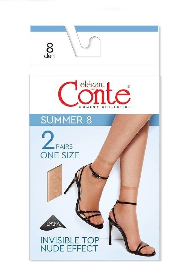 Ultra tenké dámské ponožky - vyrobené z polyamidových vláken 8 den - jemná manžeta se speciální netlačící konstrukcí a neviditelnou výztuhou v oblasti prstů - perfektní řešení pro větší pohodlí a komfort v teplejších dnech - baleno ve dvou párech Složení: 76% polyamid, 24% elastan