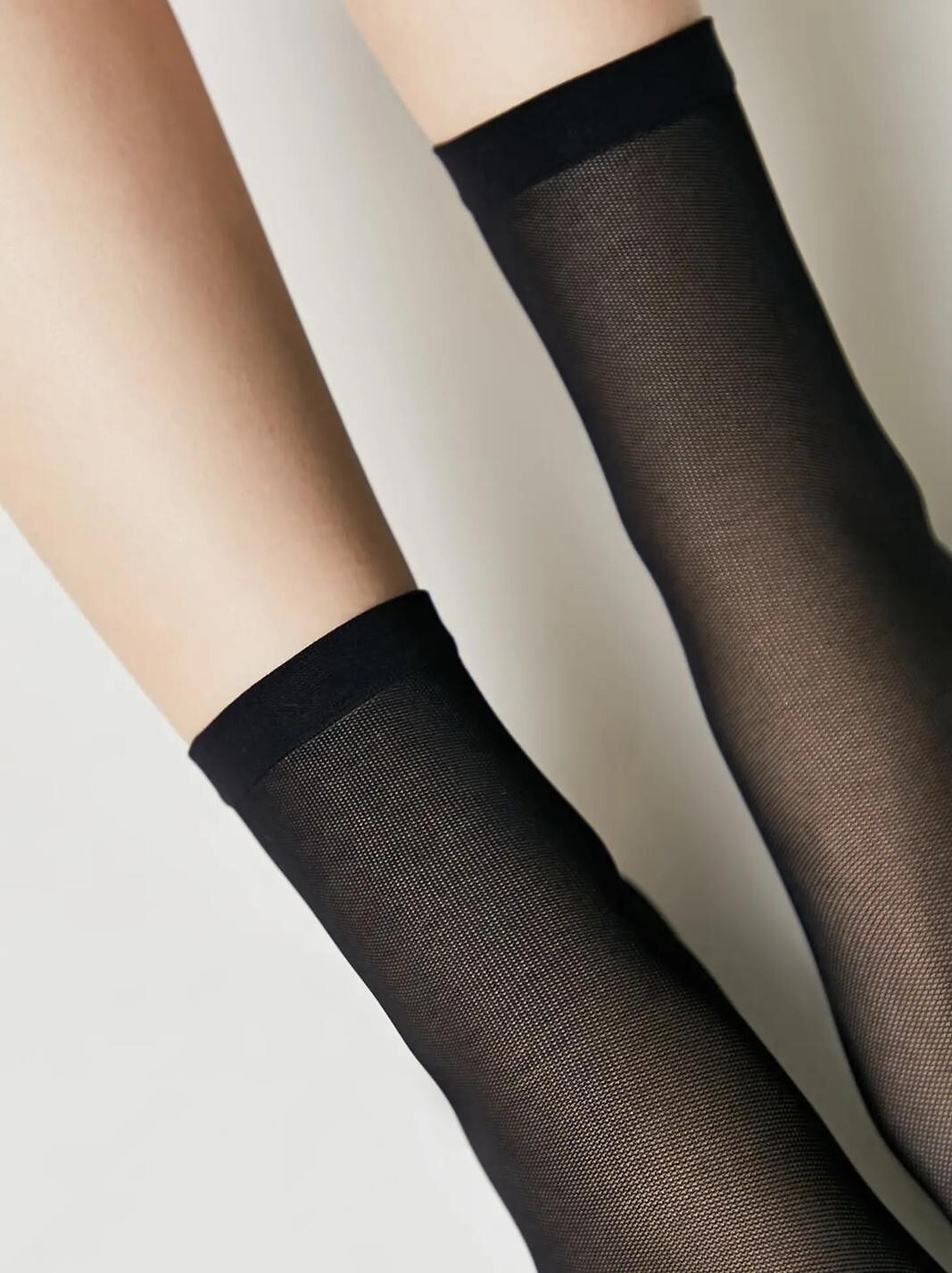 Pružné, matné ponožky s tylovým efektem - odolné proti propíchnutí díky speciální technologii lisované vazby "Stop runs" - bez výztuh na prstech - tenká gumička na manžetě - baleno po dvou párech v krabici Složení: 85% polyamid, 15% elastan