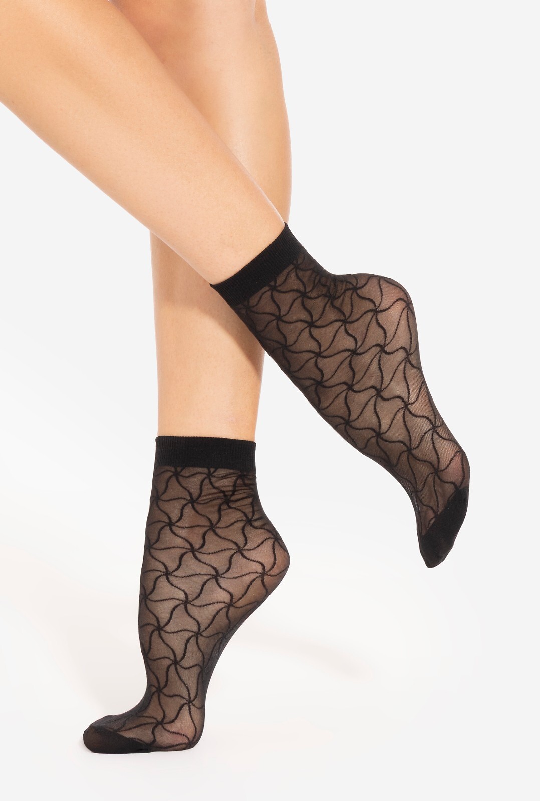 Dámské ponožky - tloušťka 20 den - poutavý vzor - nekompresní manžeta - jemné výztuhy na prstech Složení: 89% polyamid, 11% elastan