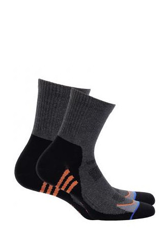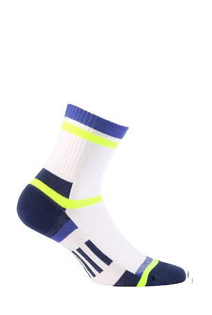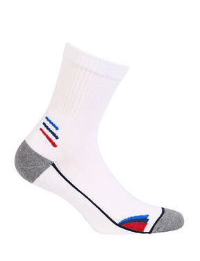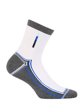 Pánské sportovní ponožky - vyrobené z vysoce kvalitní bavlny, s ionty stříbra a elastickými vlákny - ploché švy, netlačící manžeta, elastický pás a zesílená konstrukce paty a špičky - ideální pro fyzicky aktivní osoby - originální design - díky použití vláken Prolen Siltex poskytují pocit pohodlí při cvičení a zabraňují pocení nohou Složení: v závislosti na designu 76-78% bavlna, 3-5% polyamid, 16% polypropylen, 3% elastan