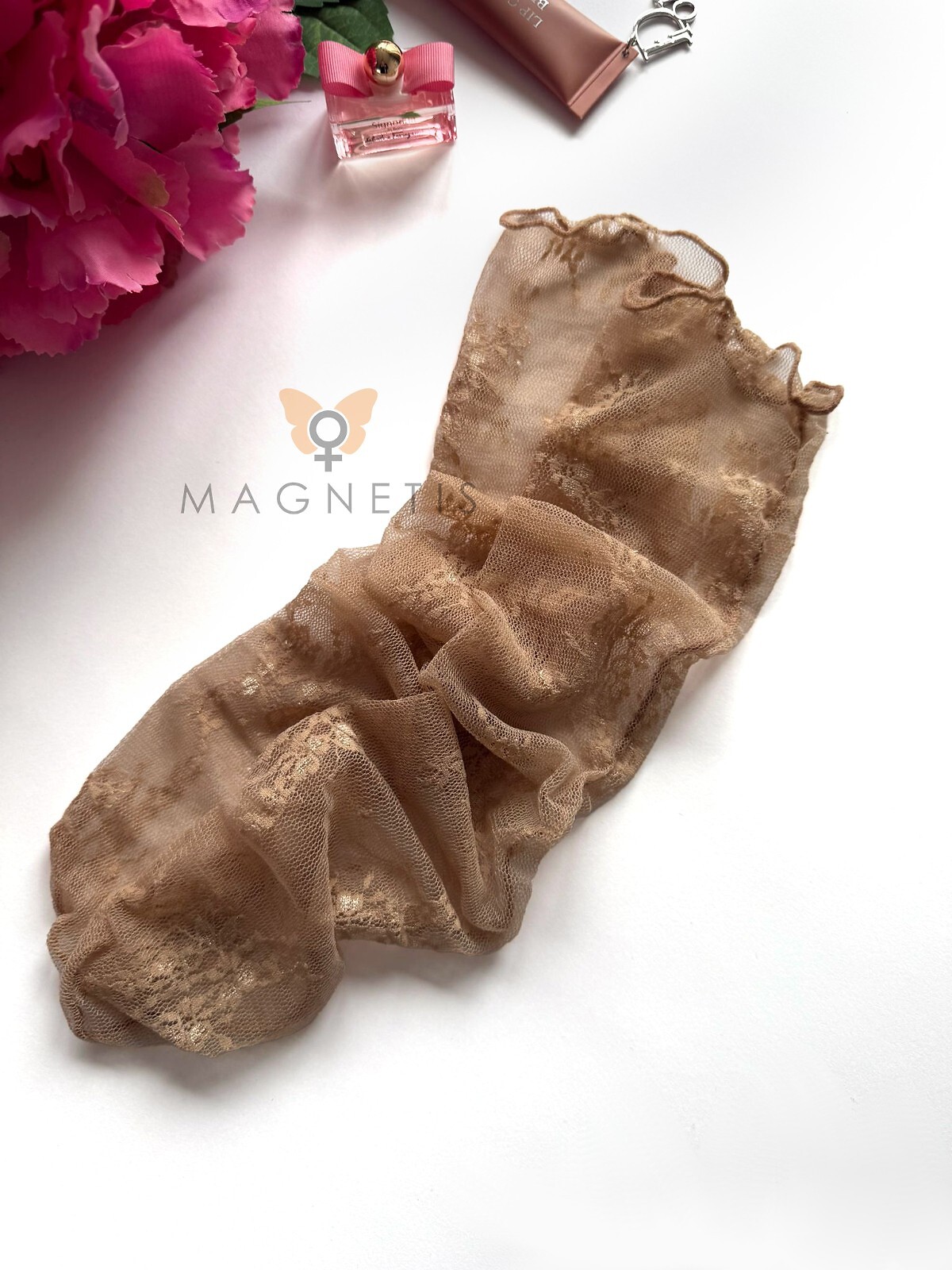 Dámské ponožky - síťovina s květinovým potiskem - nekompresní manžeta - bez výztuh na prstech - dostupné barvy: černá, béžová, ecru vybrané náhodně Složení: 90% polyamid, 10% elastan