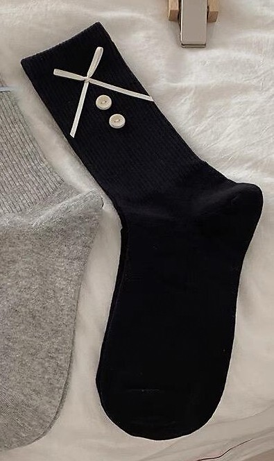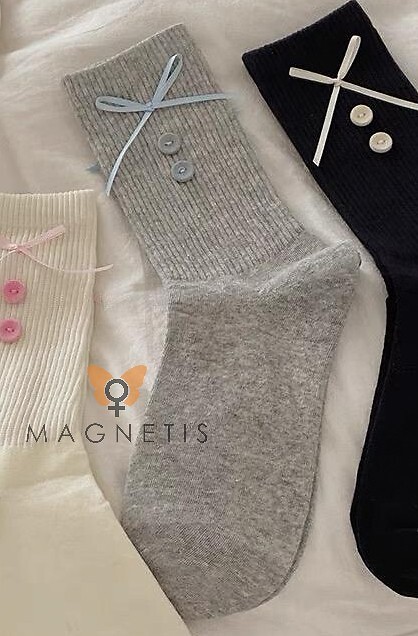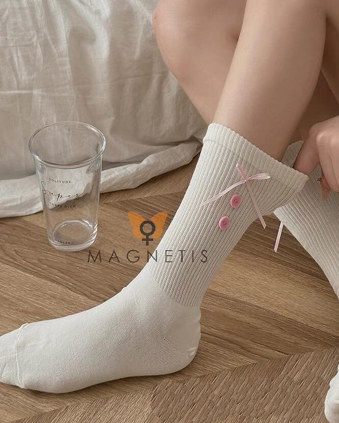 Elegantní dámské ponožky - měkký úplet s jemným proužkem - zdobené mašlí a knoflíky. Složení: 80% bavlna, 15% polyester, 5% elastan.