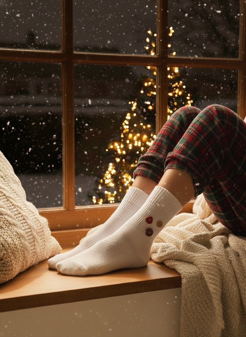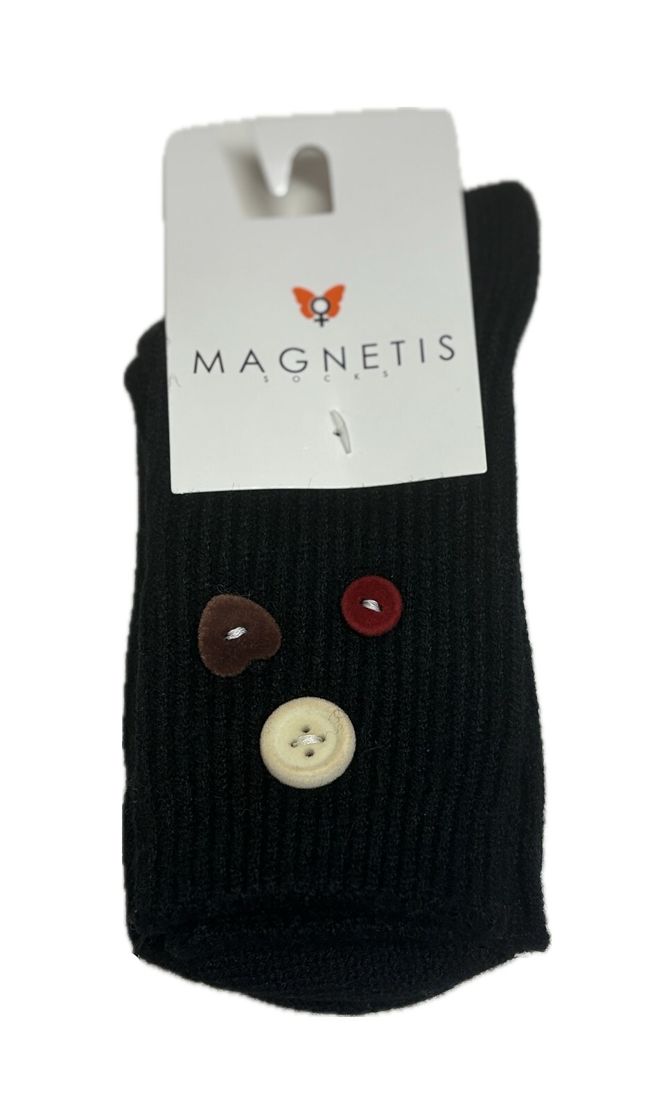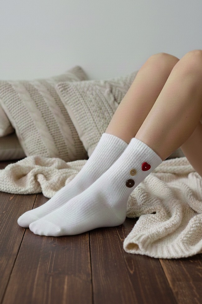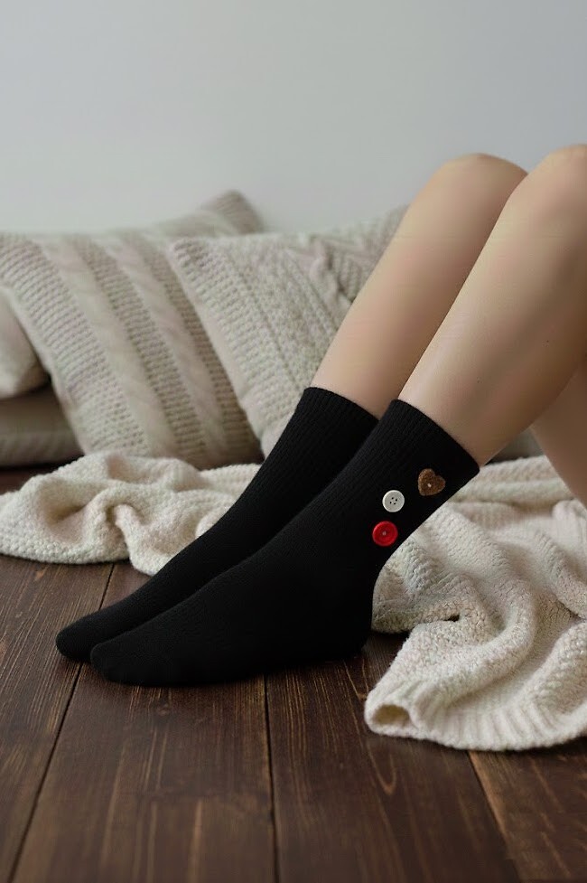 Dámské ponožky - měkký žebrovaný úplet - svršek zdobený přišitými knoflíky - nekompresní manžeta Složení: 38% vlna, 60% polyester, 2% elastan