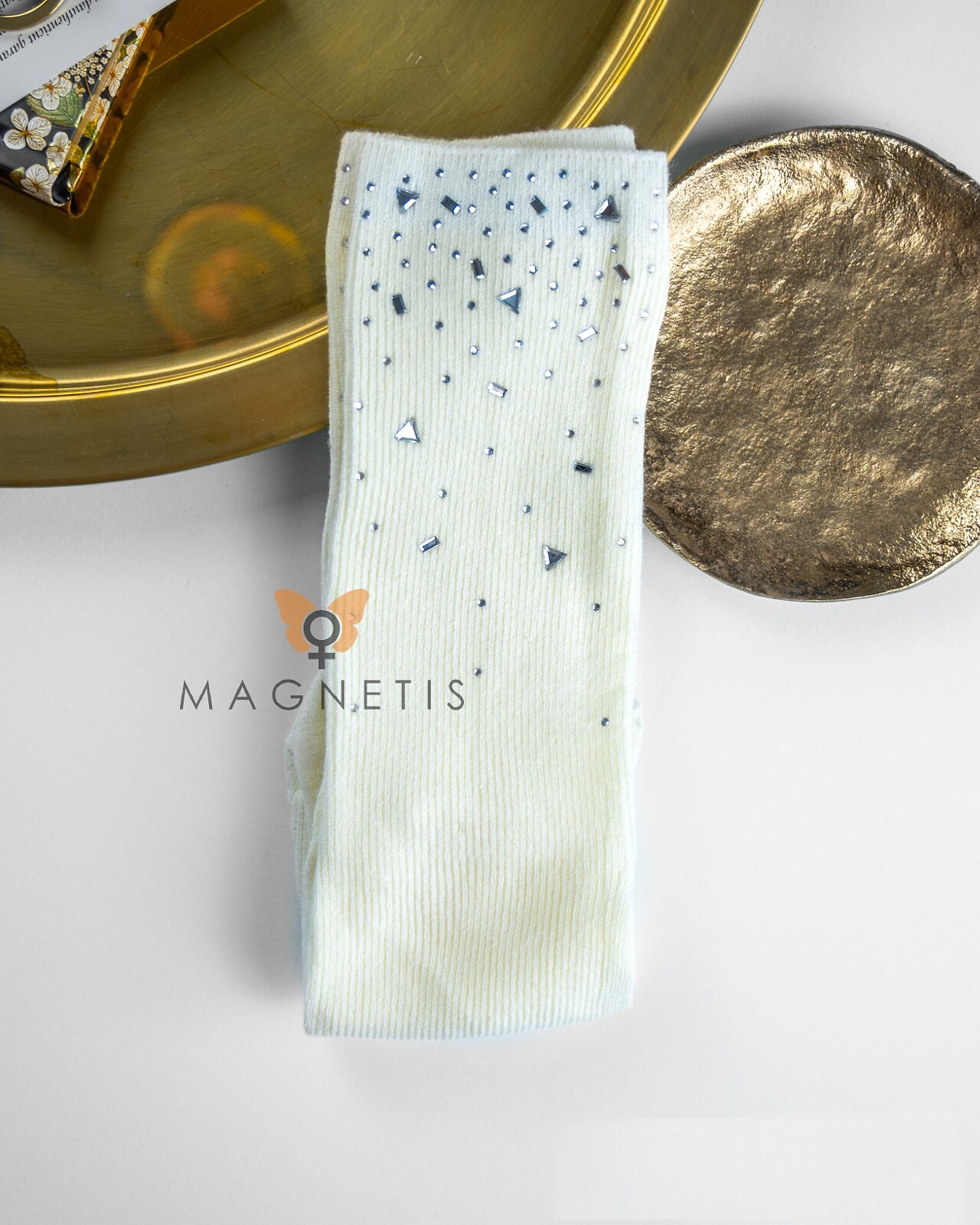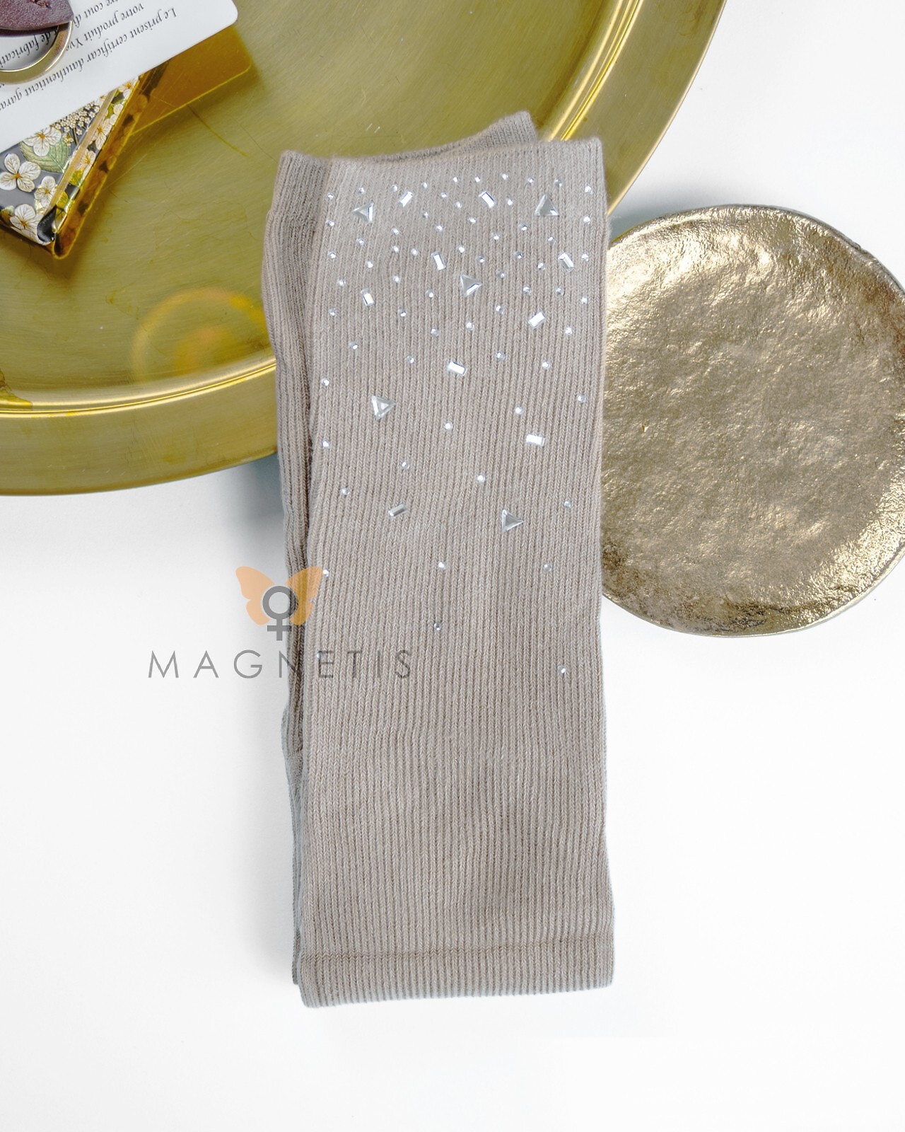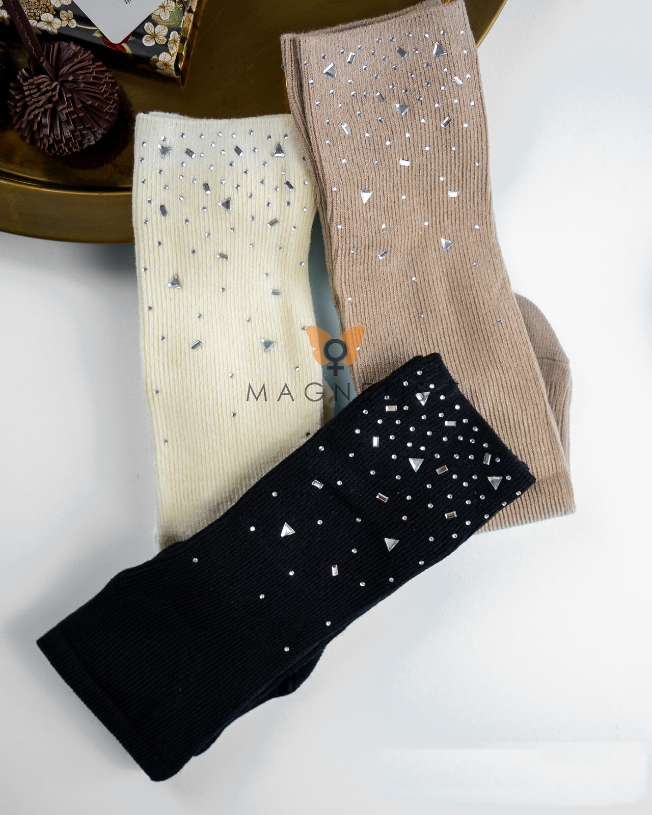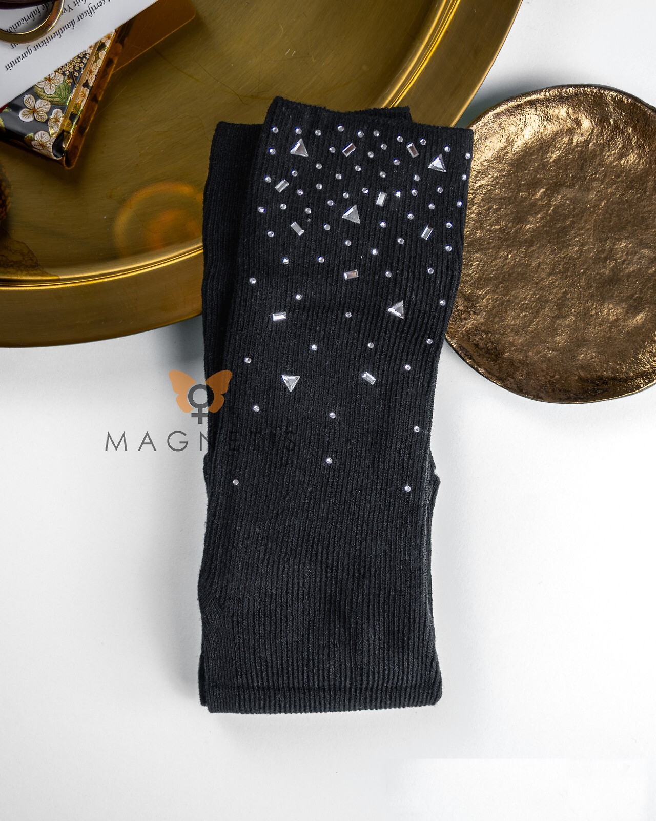 Dámské elegantní ponožky - měkký úplet - svršek zdobený lesklými geometrickými prvky - nekompresní manžeta Složení: 92% bavlna, 8% elastan