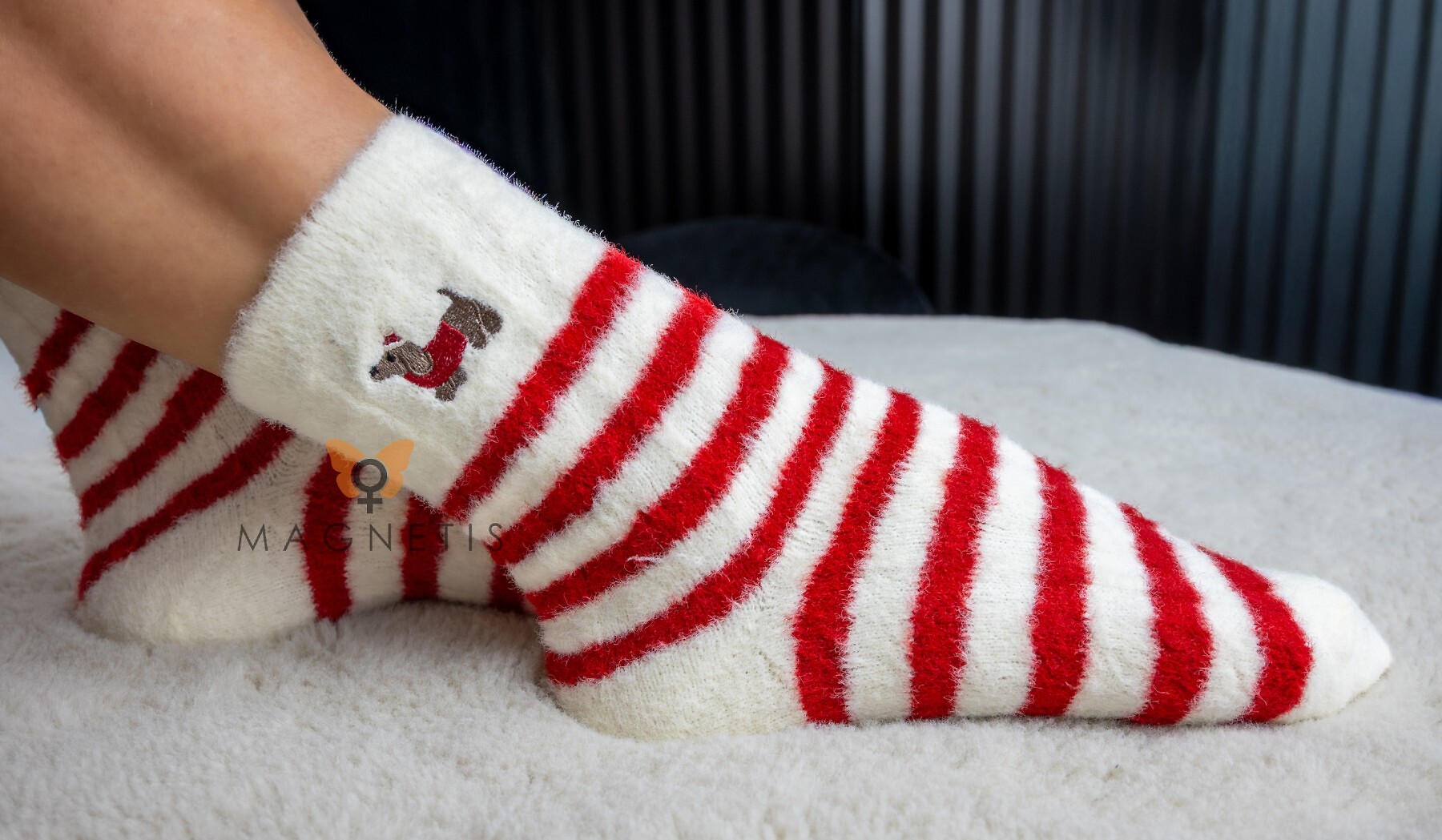 Dámské elegantní ponožky - vánoční vzor - měkký úplet - s reliéfním vzorem - zdobené výšivkou. Složení: 43,6% viskóza, 30% polyamid, 24,8% polyester, 1,6% elastan.