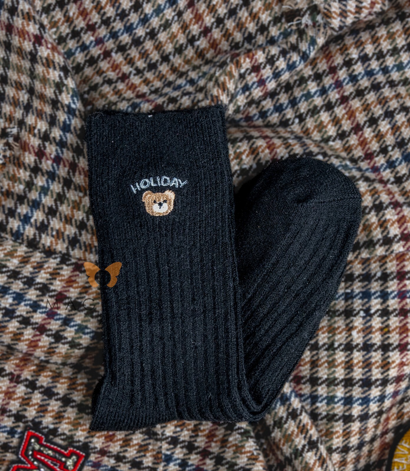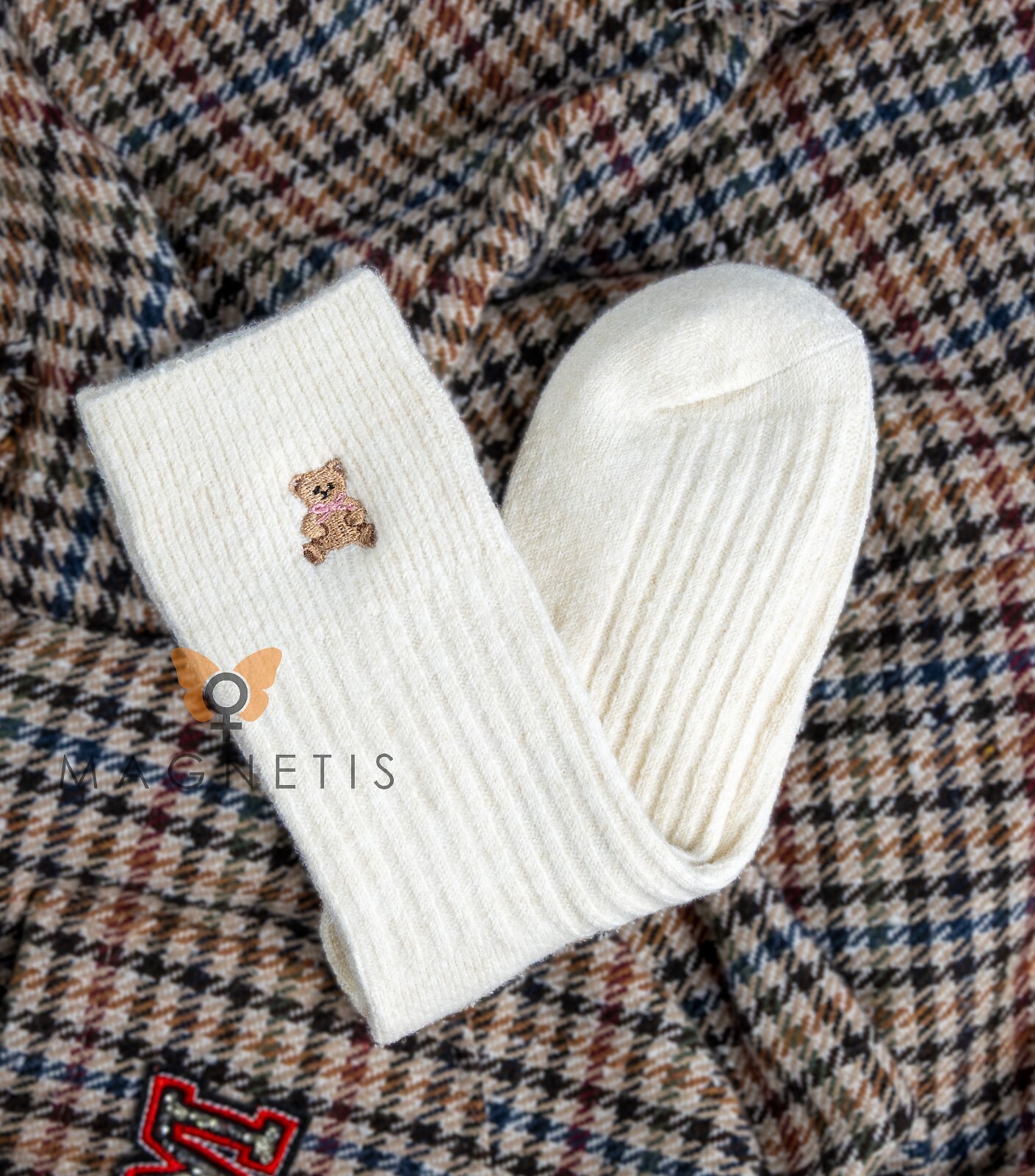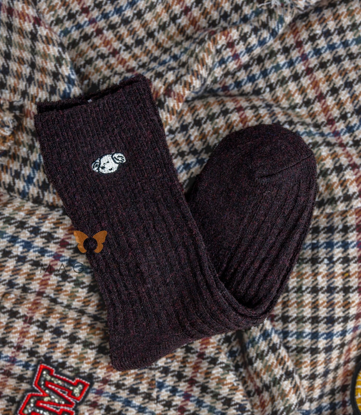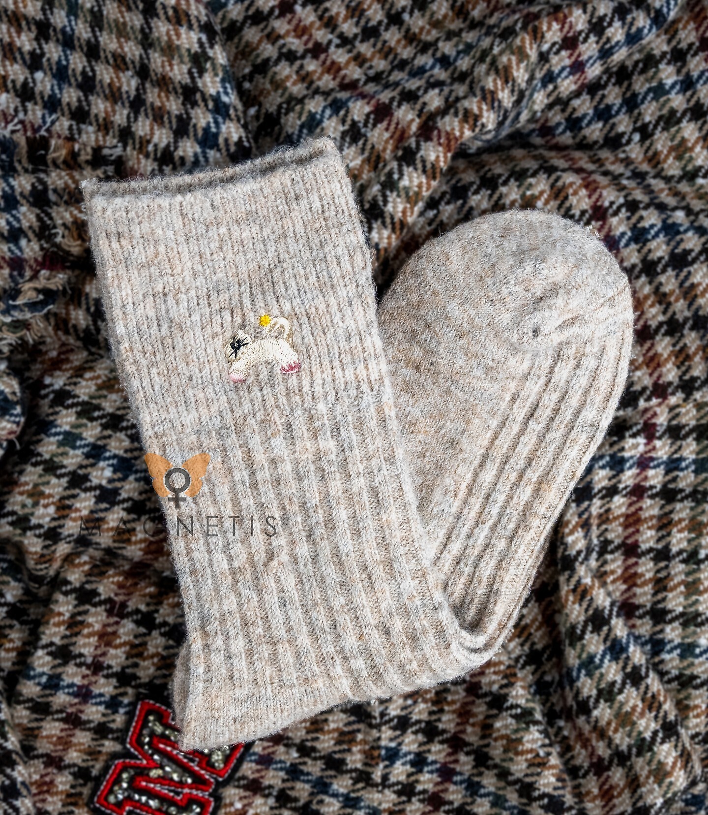 Teplé dámské ponožky - měkký žebrovaný úplet - svršek zdobený aplikací - nekompresní manžeta Složení: 65% bavlna, 13% viskóza, 13% vlna, 6% polyamid, 3% elastan
