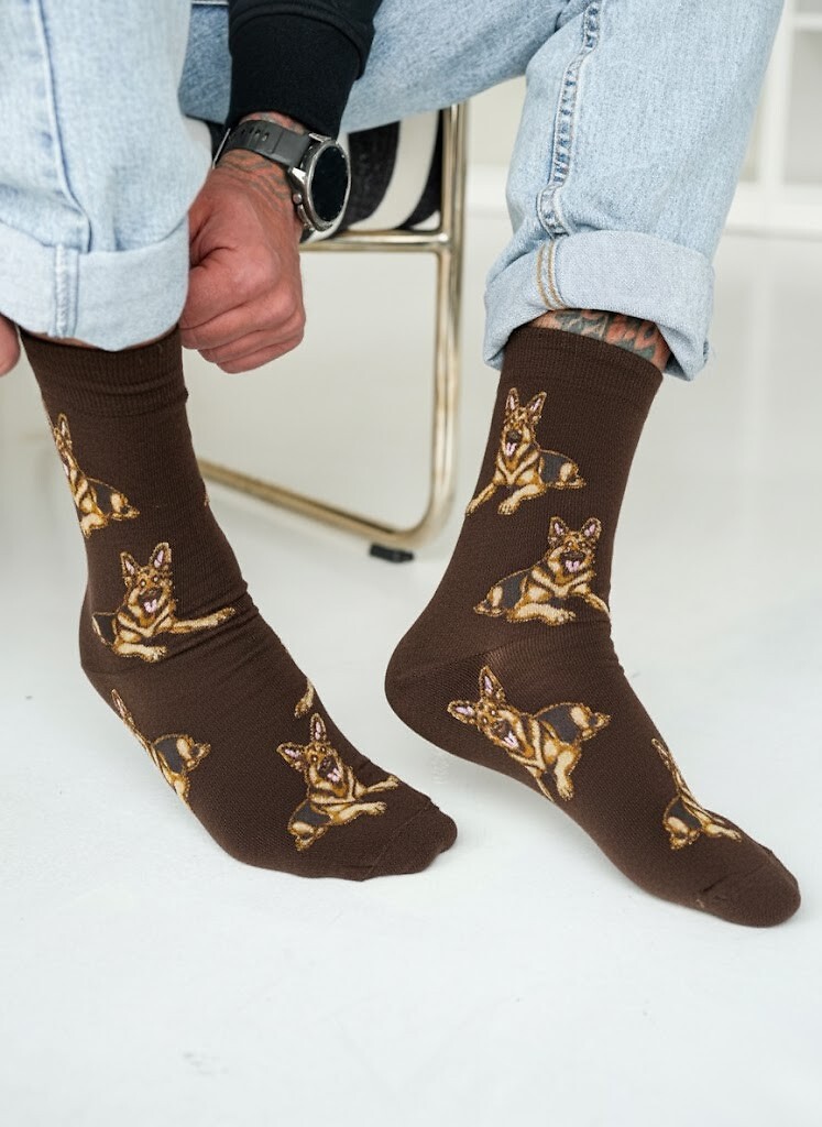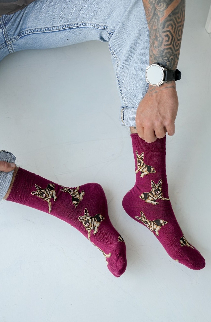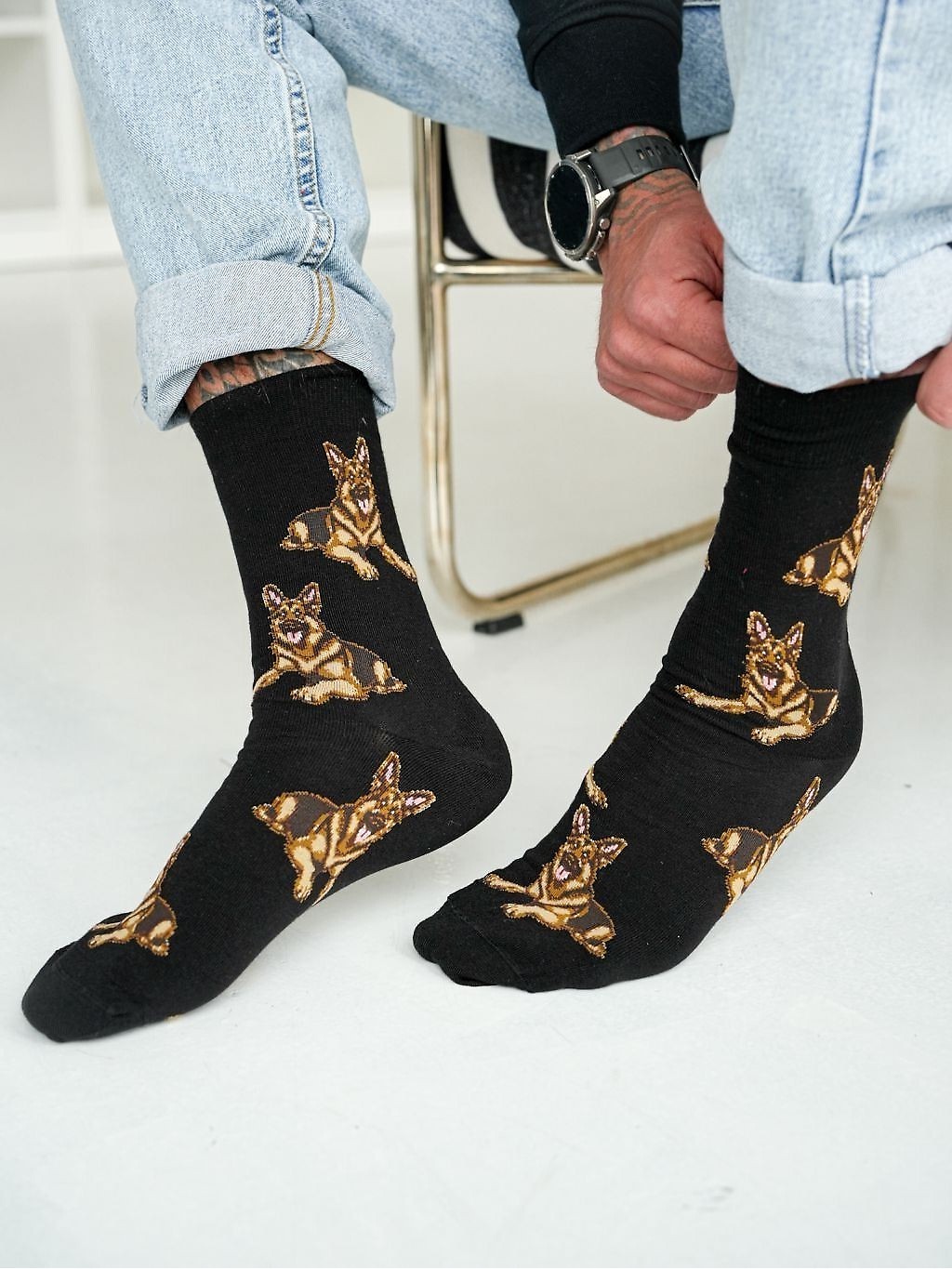 Pánské bavlněné ponožky - zvířecí motiv s ovčáky - ideální pro každodenní nošení - perfektně přizpůsobí noze - poskytují vysoký komfort nošení Složení: 75% bavlna, 20% polyamid, 5% elastan