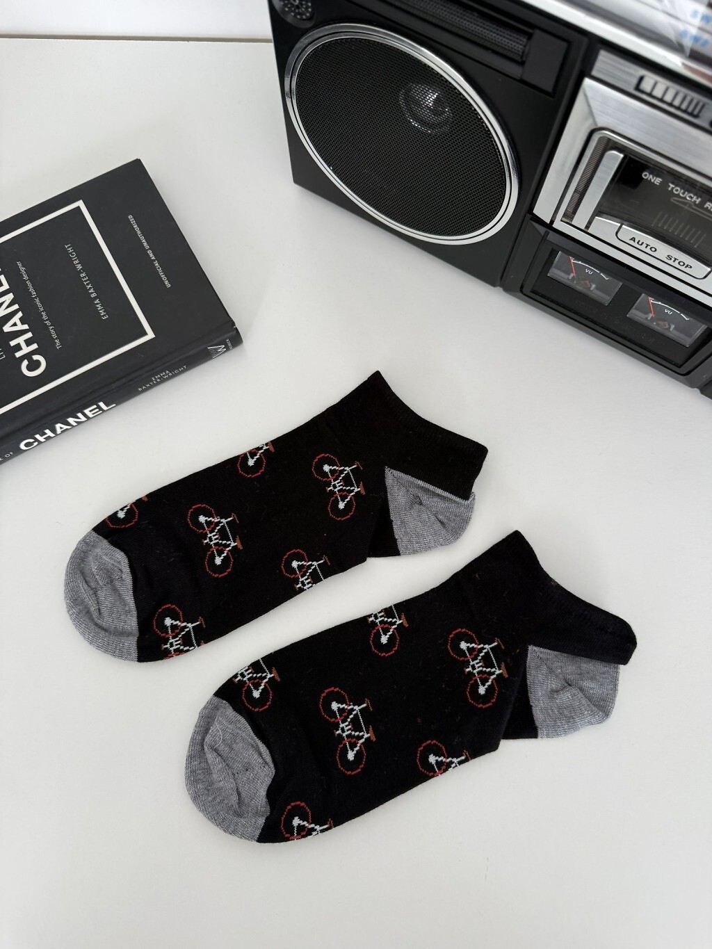 Pánské ponožky - vyrobené z vysoce kvalitní bavlny - zdobené vzorem jízdních kol - ideální pro každodenní nošení - perfektně přizpůsobí noze a poskytují vysoký komfort nošení Složení: 75% bavlna, 20% polyamid, 5% elastan