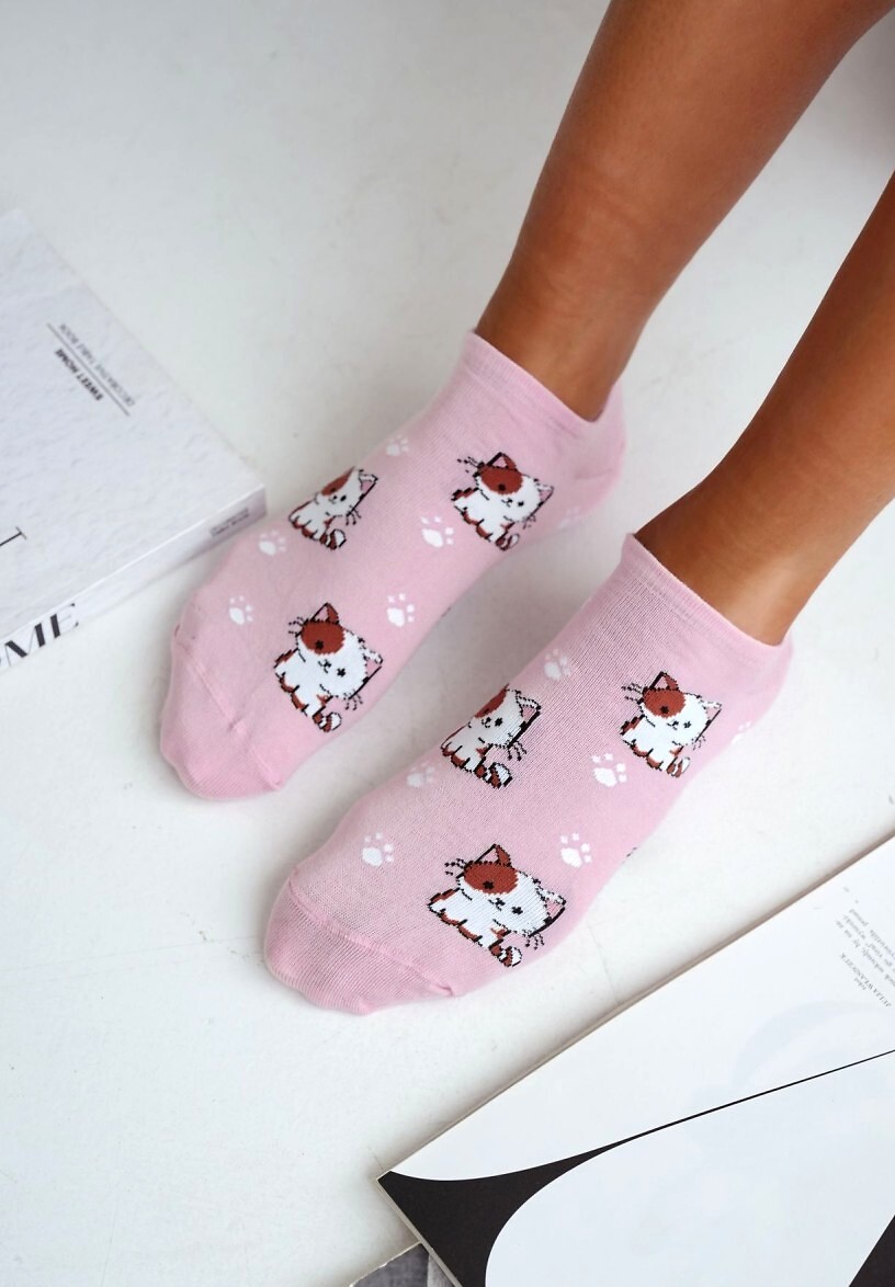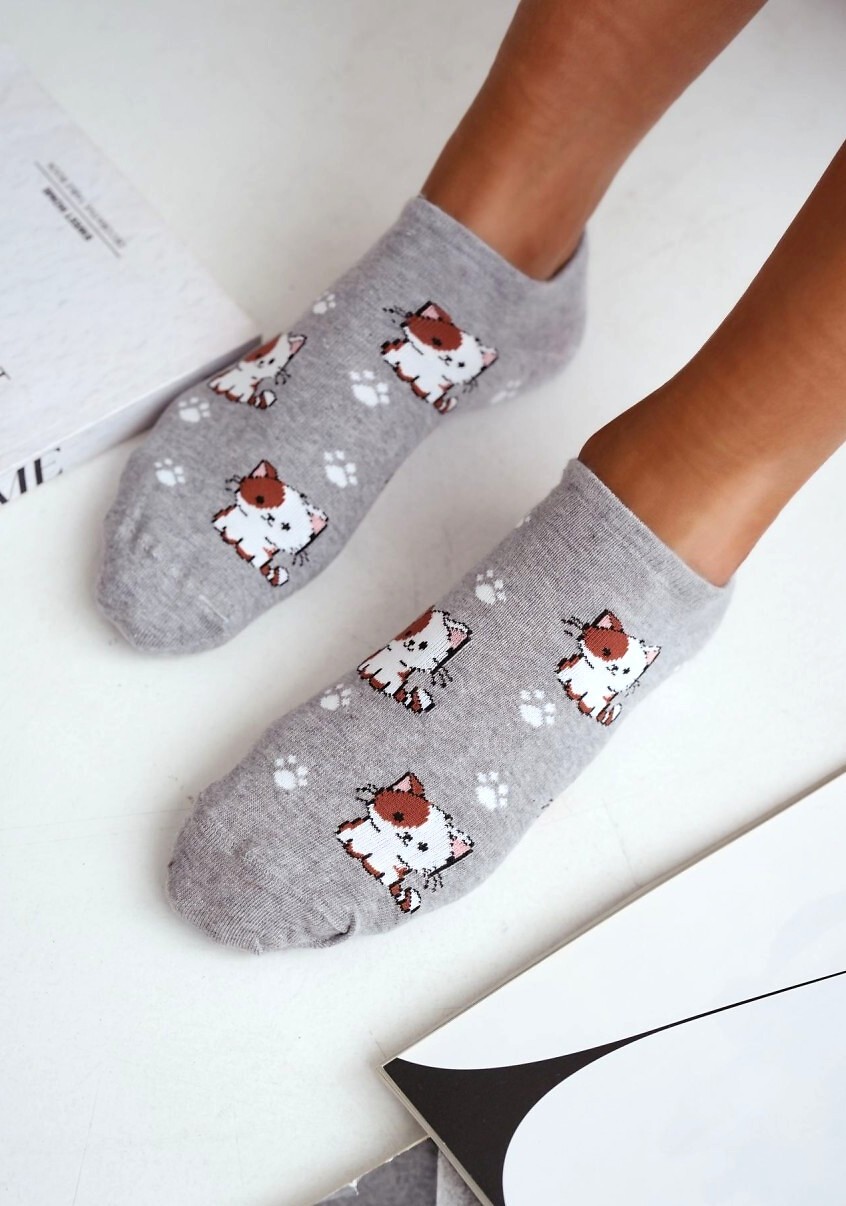 Dámské kotníkové ponožky - vyrobené z vysoce kvalitní bavlny - zdobené kočičím vzorem - ideální pro každodenní nošení - perfektně přizpůsobí noze a poskytují vysoký komfort nošení Složení: 75% bavlna, 20% polyamid, 5% elastan