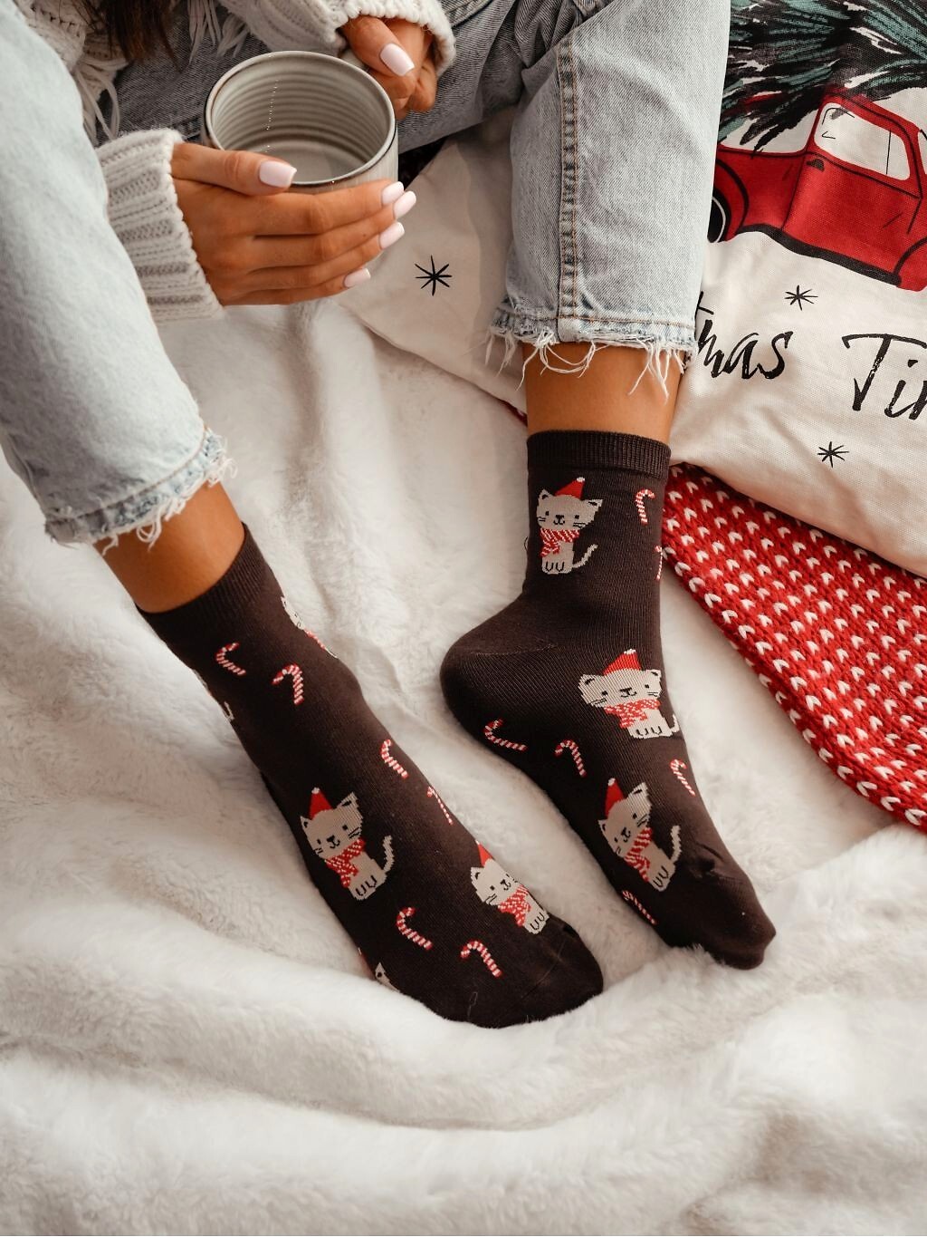 Barevné dámské ponožky - zdobené vánočním motivem - vysoce kvalitní bavlna - ideální jako dárek Složení: 75% bavlna, 20% polyamid, 5% elastan