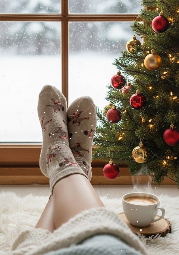 Barevné dámské ponožky - zdobené vánočním motivem - vysoce kvalitní bavlna - ideální jako dárek Složení: 75% bavlna, 20% polyamid, 5% elastan