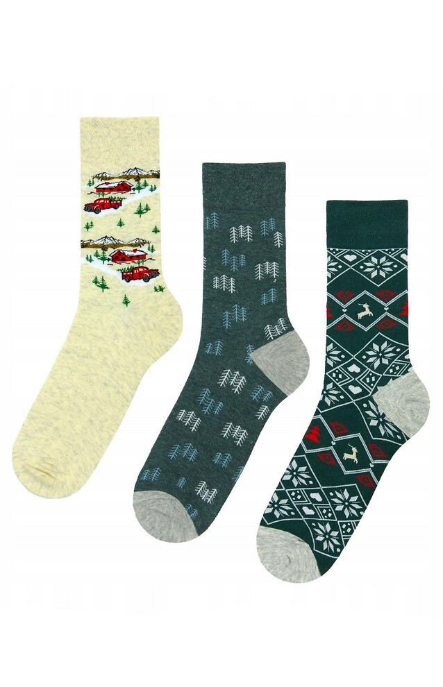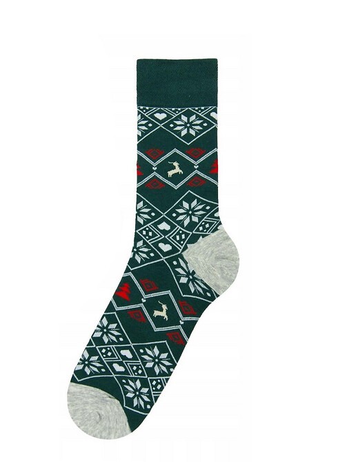 Pánské bavlněné ponožky - zimní vzory - ploché švy, pohodlná manžeta - dostupné barvy: zelená-sobí, zelená-vánoční stromečky, ecru-melage Složení: 70% bavlna, 20% polyester, 5% polyamid, 5% elastan
