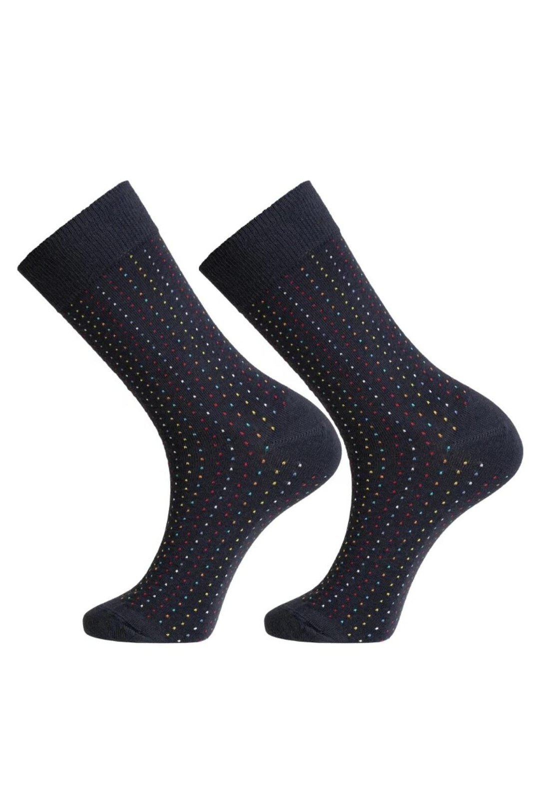 Pánské bavlněné ponožky - vzor s malými, barevnými tečkami - ploché švy, pohodlná manžeta - dostupné barvy vybrané náhodně: černá, grafitová, šedá, tmavě modrá Složení: 75% bavlna, 23% polyamid, 2% elastan