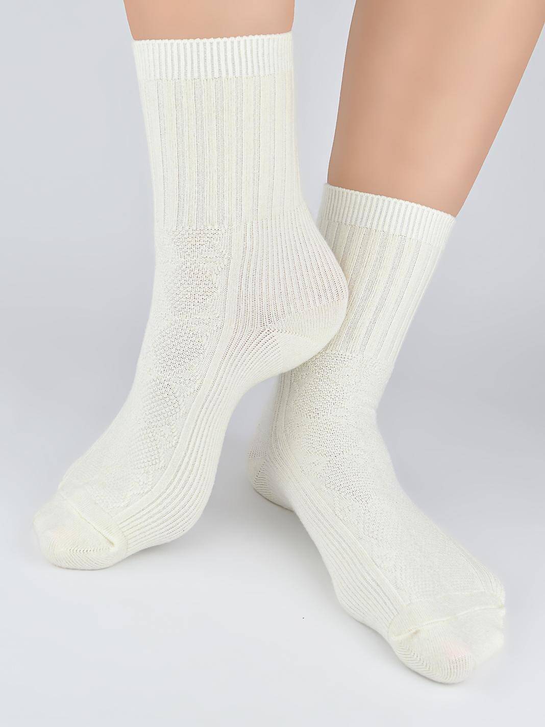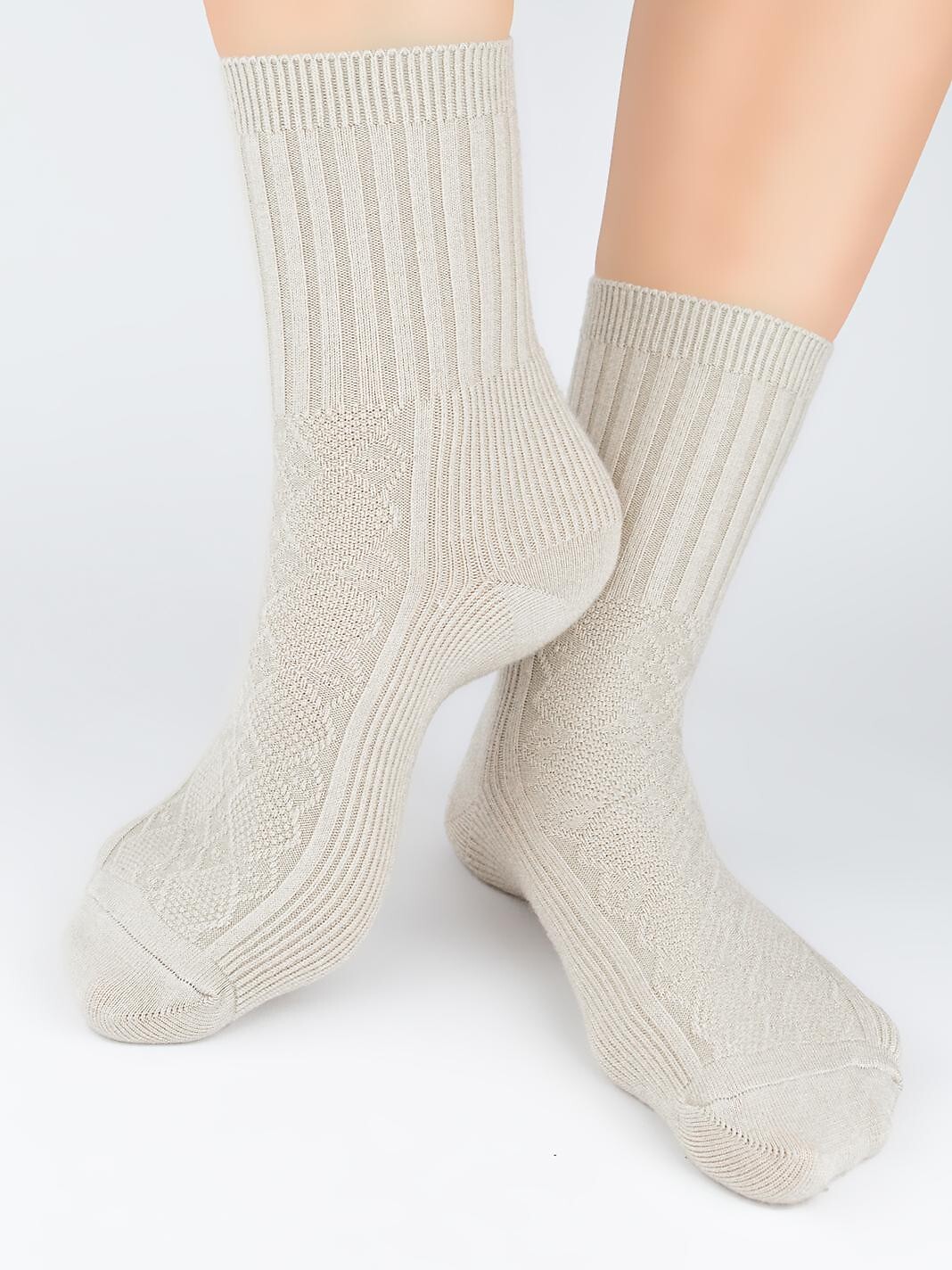 Dámské ponožky - měkký úplet - žakárový vzor - nekompresní žebrovaná manžeta - ploché švy Složení: 43% akryl, 42% polyester, 12% vlna, 3% elastan