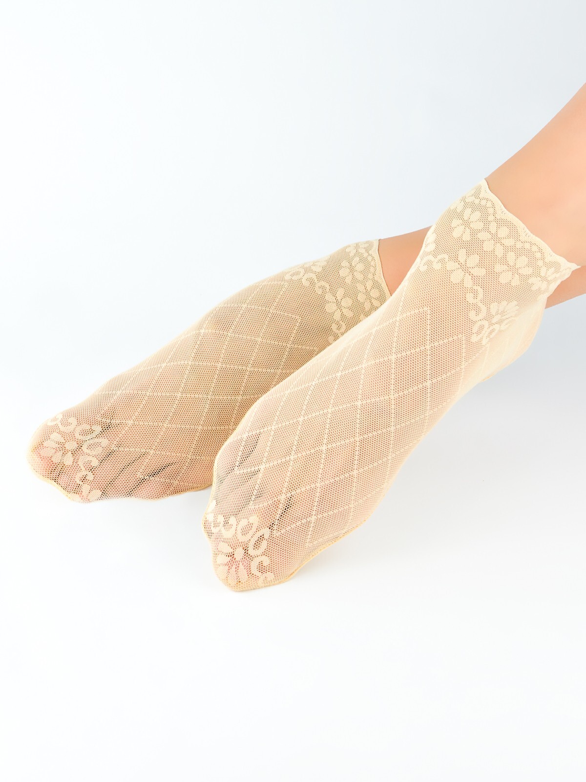 Dámské krajkové ponožky - zdobené jemným vzorem - hladká bavlněná podrážka - perfektně přizpůsobí noze - chrání před oděrem Složení: vrchní díl 83% polyamid, 17% elastan, spodní díl 95% bavlna, 5% elastan