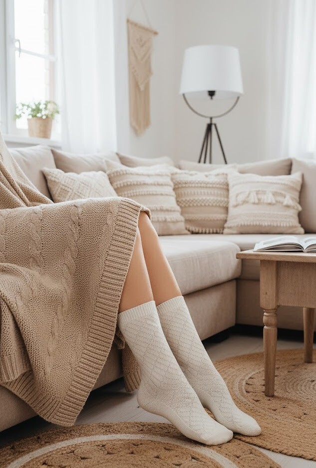 Dámské ponožky - měkký úplet - geometrický, žakárový vzor - nekompresní žebrovaná manžeta - ploché švy Složení: 45% akryl, 38% polyamid, 12% vlna, 5% elastan