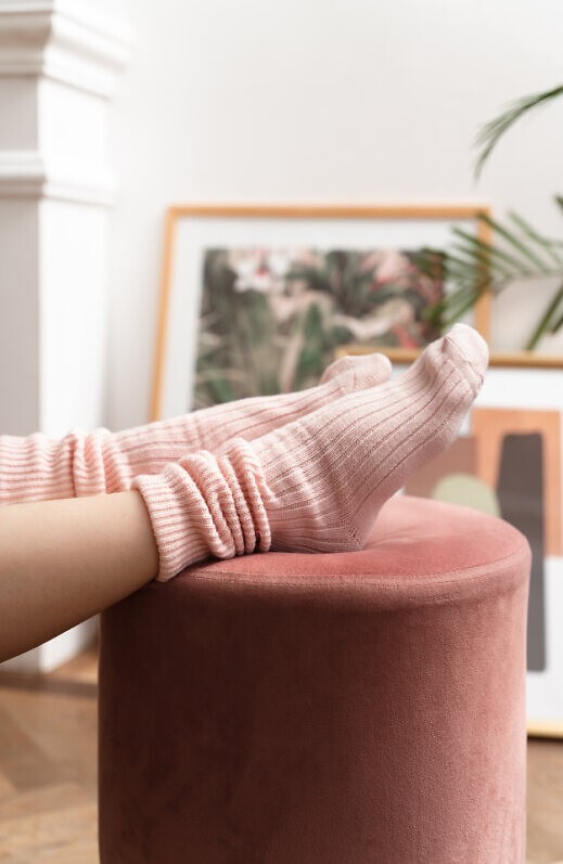 Teplé spací ponožky vyrobené z akrylu (70%) a vlny (30%). Pohodlné, jemně přiléhající k noze, s nekompresním lemem.