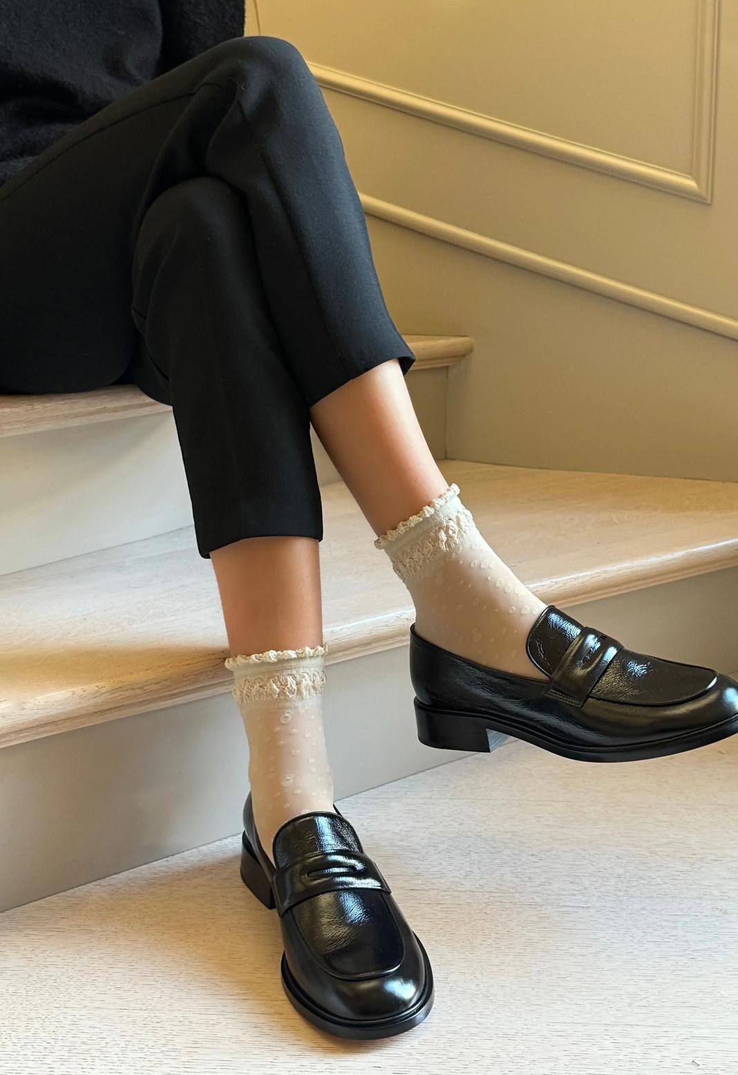 Vzorované ponožky vyrobené z 88 % polyamidu a 12 % elastanu, zakončené efektním lemem.