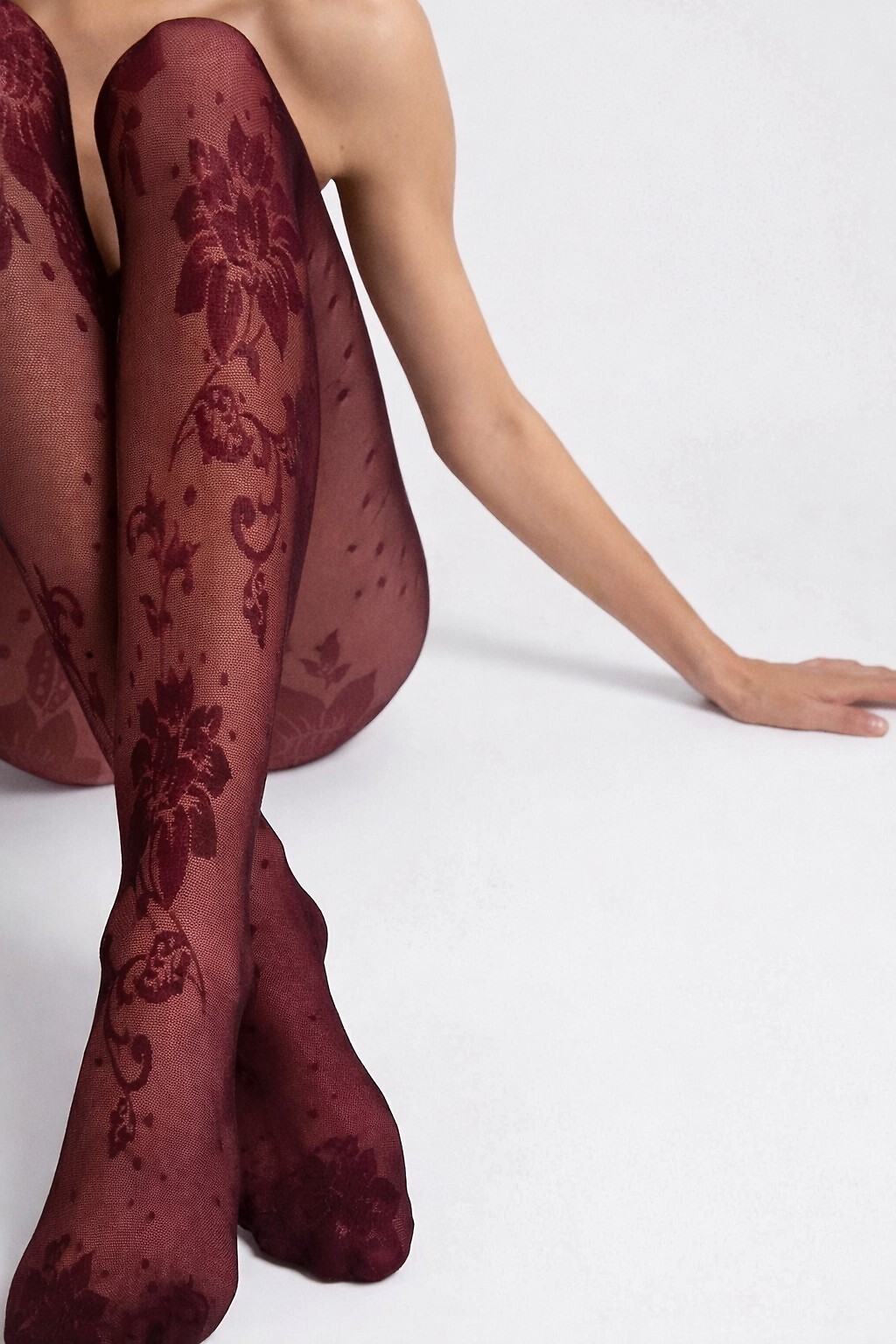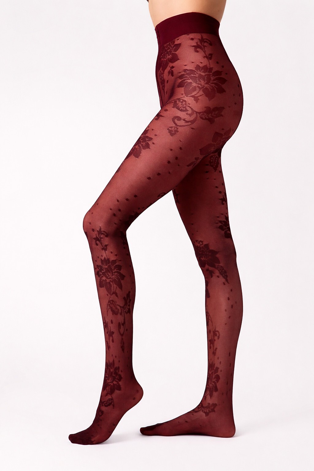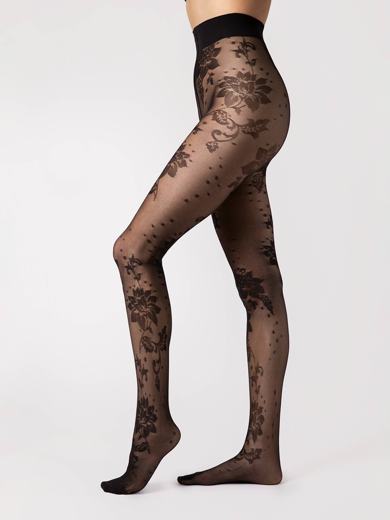 Dámské punčocháče, 30 den - vyrobené z příze "polyamid" - matné - atraktivní květinový vzor - bez výztuže na prstech - označená část kalhotek - s klínkem Složení: 85% polyamid, 15% elastan