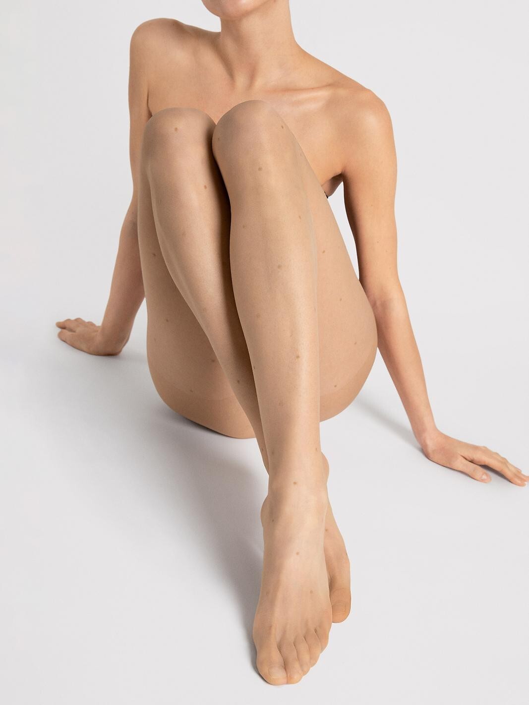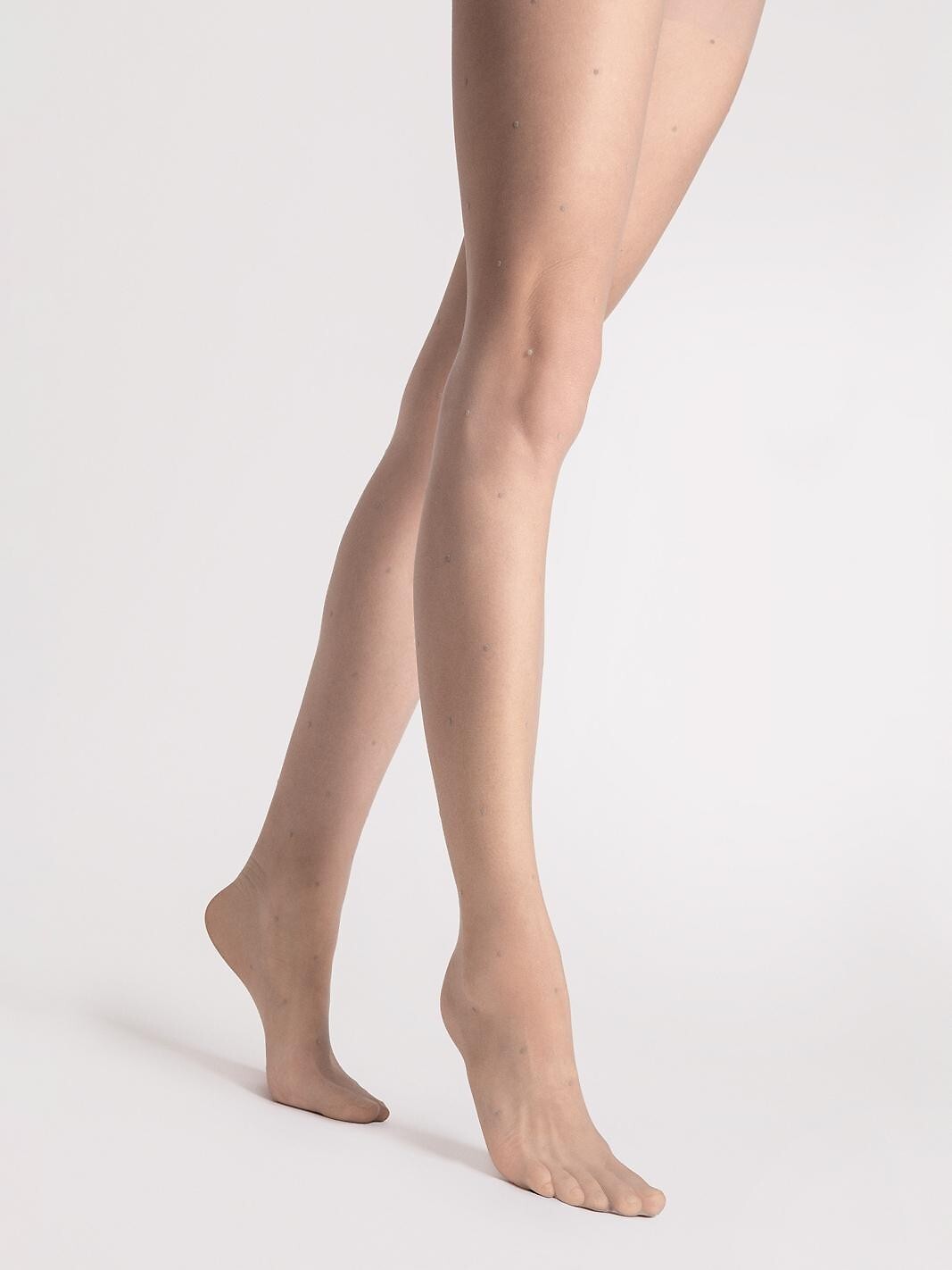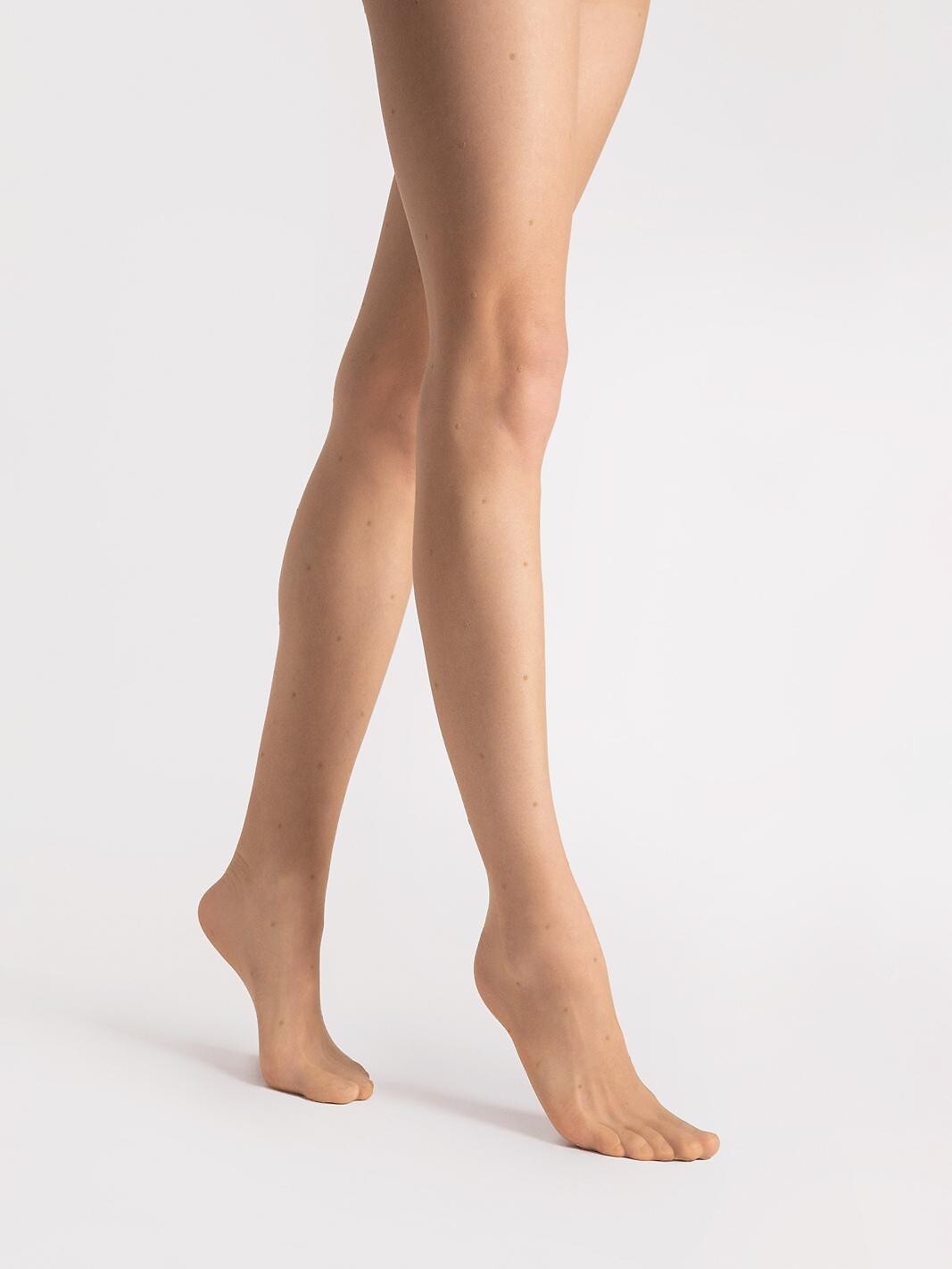 Dámské punčocháče, 10 den - vyrobené z pletené elastanové příze - matné - jemný puntíkovaný vzor - bez výztuh na prstech - malý klínek Složení: 92% polyamid, 8% elastan