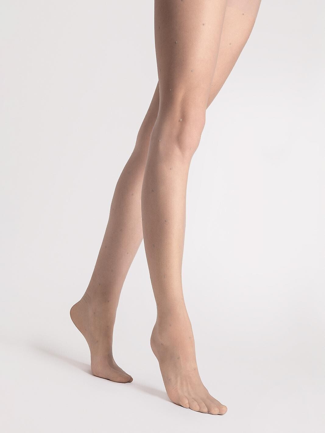 Dámské punčocháče, 10 den - vyrobené z pletené elastanové příze - matné - jemný puntíkovaný vzor - bez výztuh na prstech - velký klínek Složení: 92% polyamid, 8% elastan