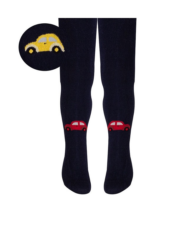 Chlapecké punčocháče - počítačově vzorované. Složení závisí na vzoru: bavlna 70-83 %, polyamid 11-24 %, polypropylen 3-5 %, elastan 2 %-4 %.