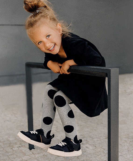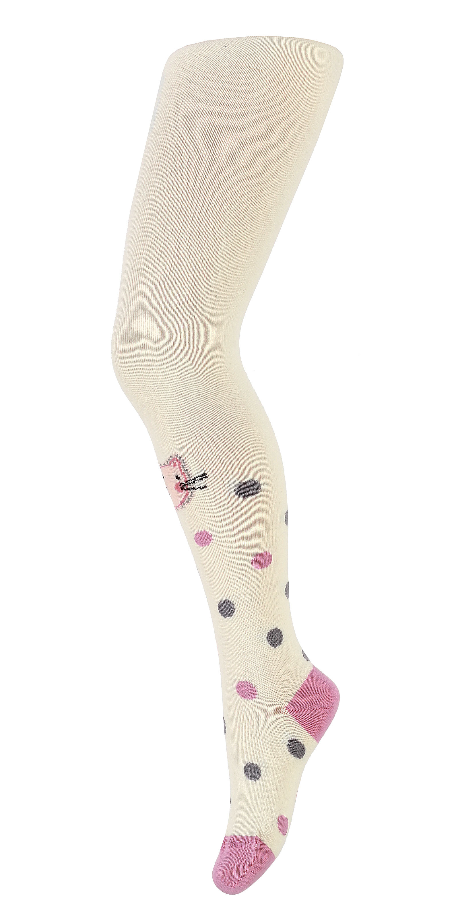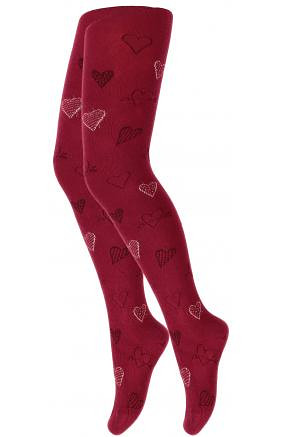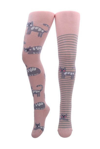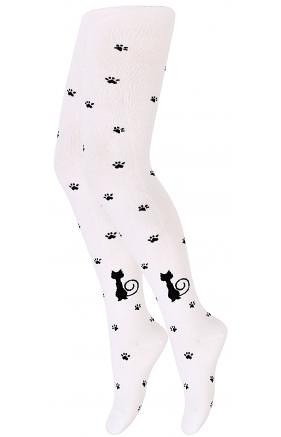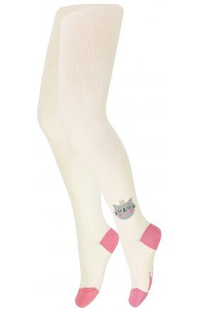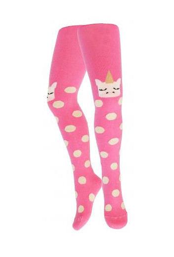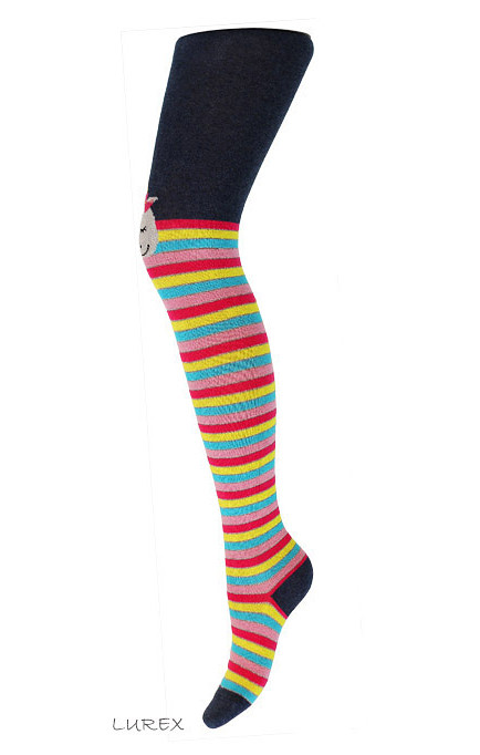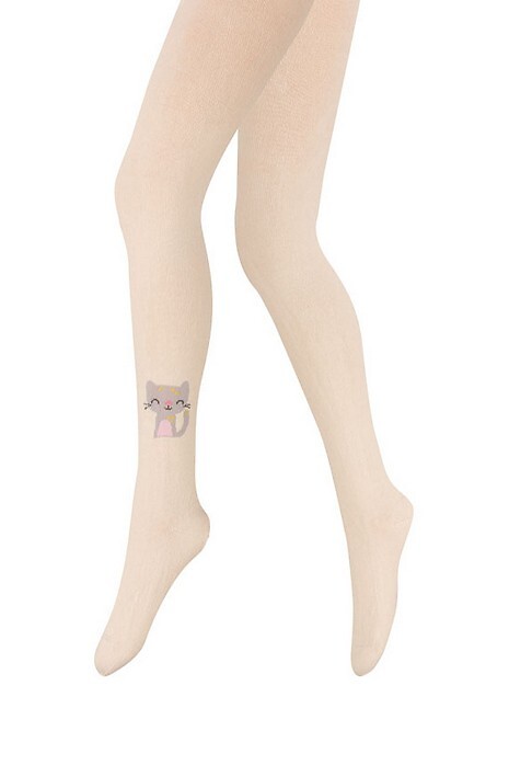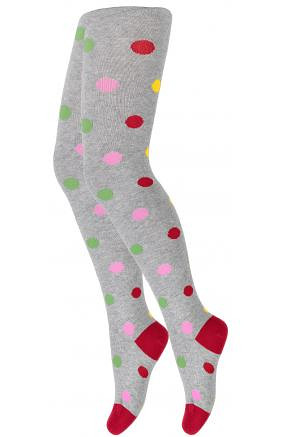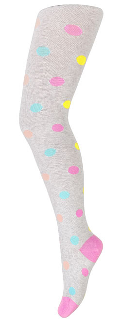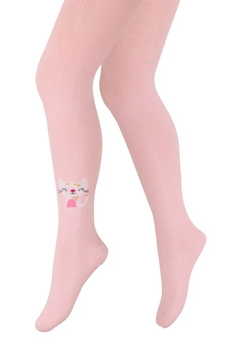Dívčí bavlněné punčocháče - zdobené barevnými vzory. Složení závisí na vzoru: bavlna 70-83 %, polyamid 11-24 %, polypropylen 3-5 %, elastan 2 %-4 %