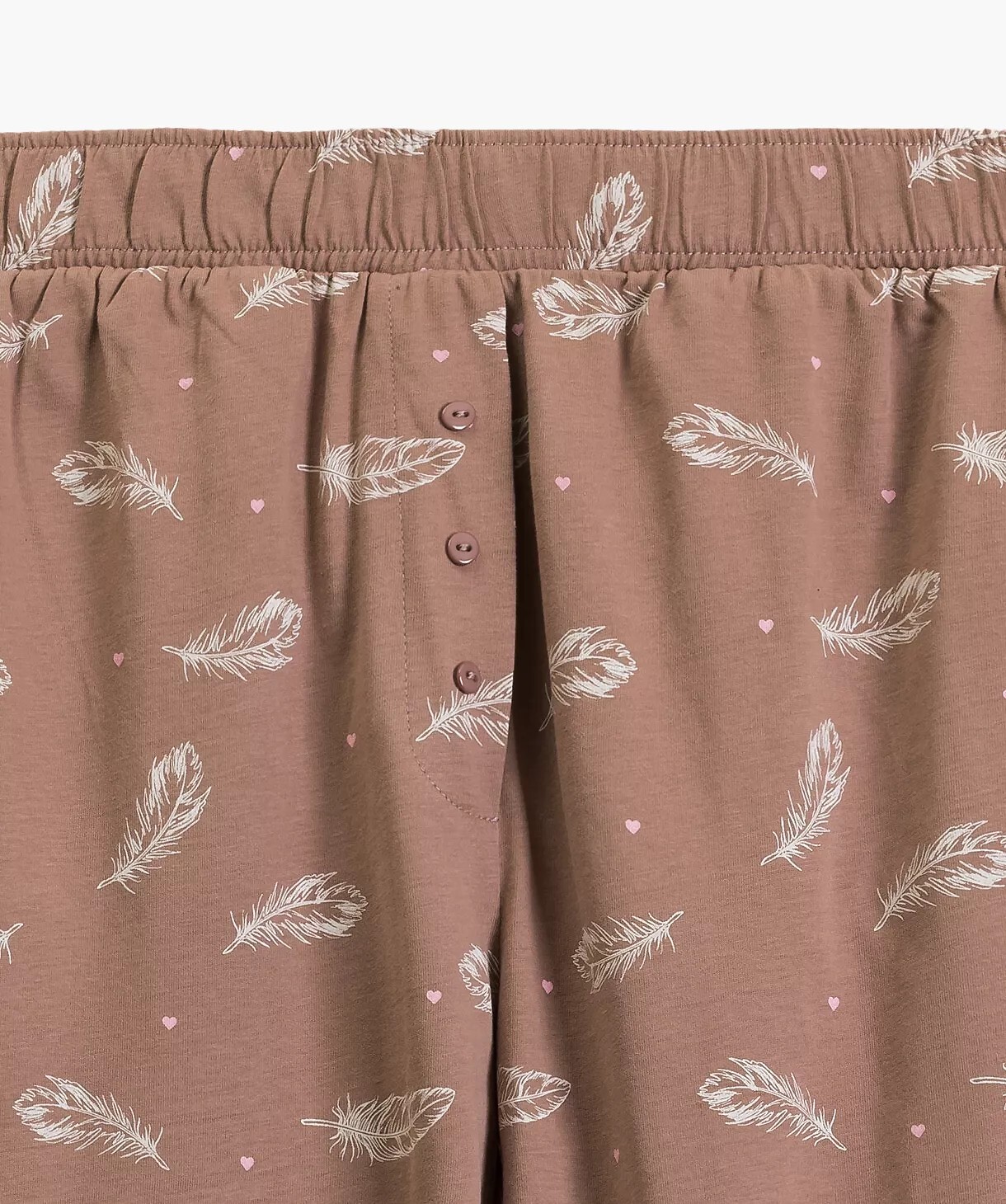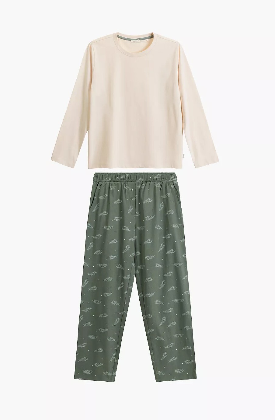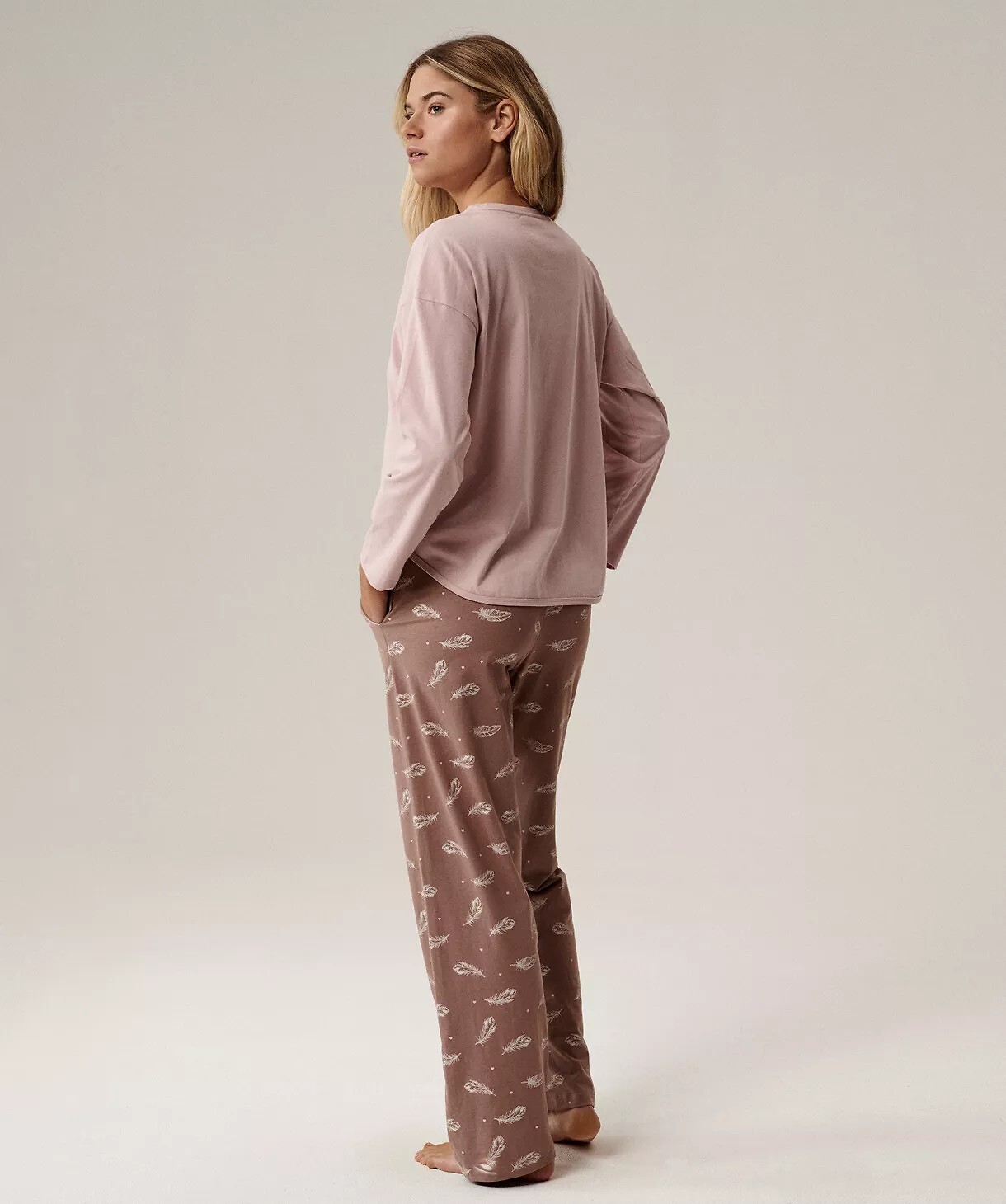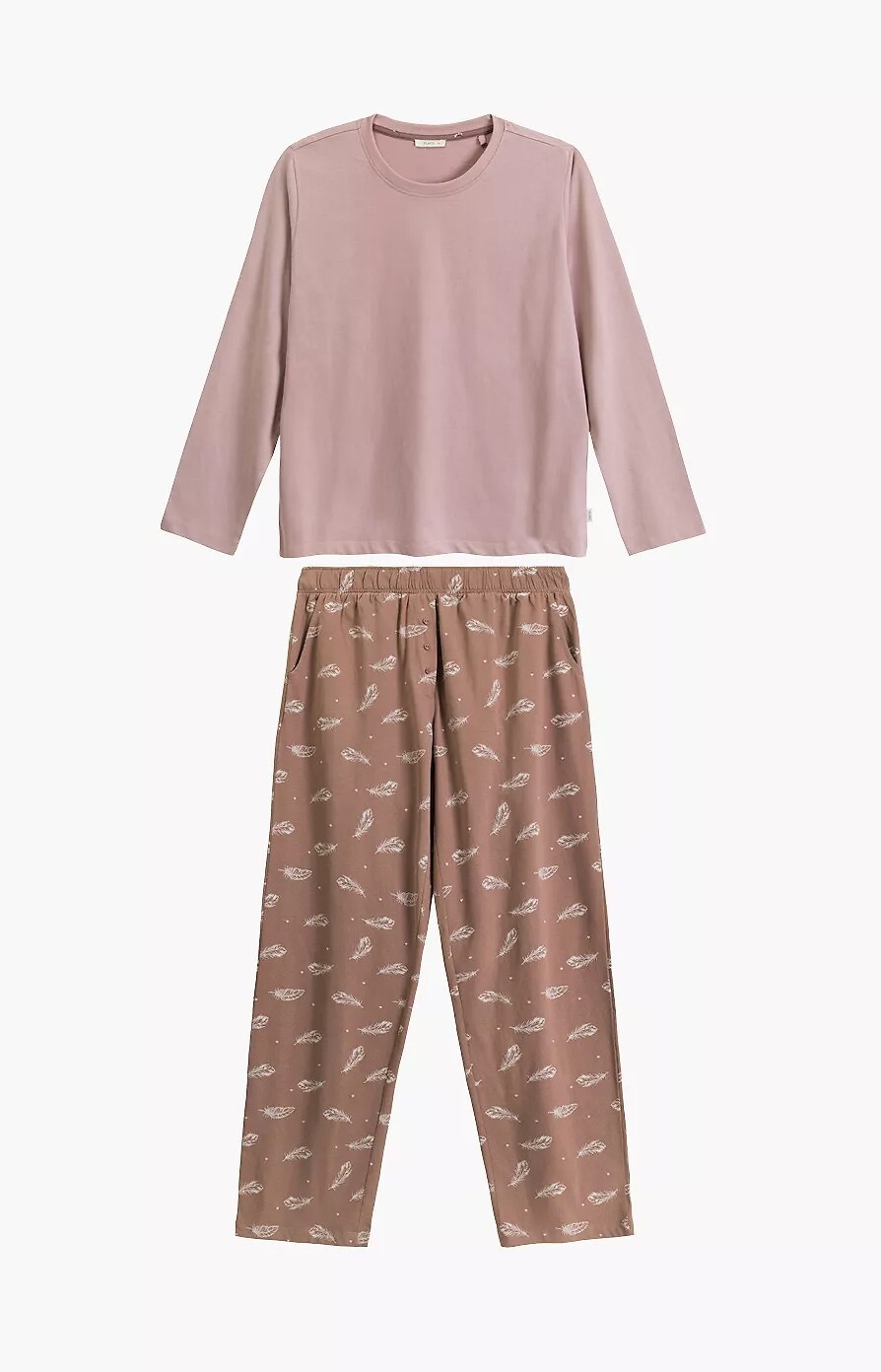 Dámské pyžamo - měkká, příjemná bavlna na dotek s efektem "smůly" (pokryté drobnými nadýchanými chloupky zvenku, na dotek připomíná broskvovou slupku) - mikina s dlouhým rukávem - kulatý výstřih - součástí jsou dlouhé vzorované nohavice - kapsy na bocích - pohodlný elastický pas lemovaný bavlnou Složení: 100% bavlna