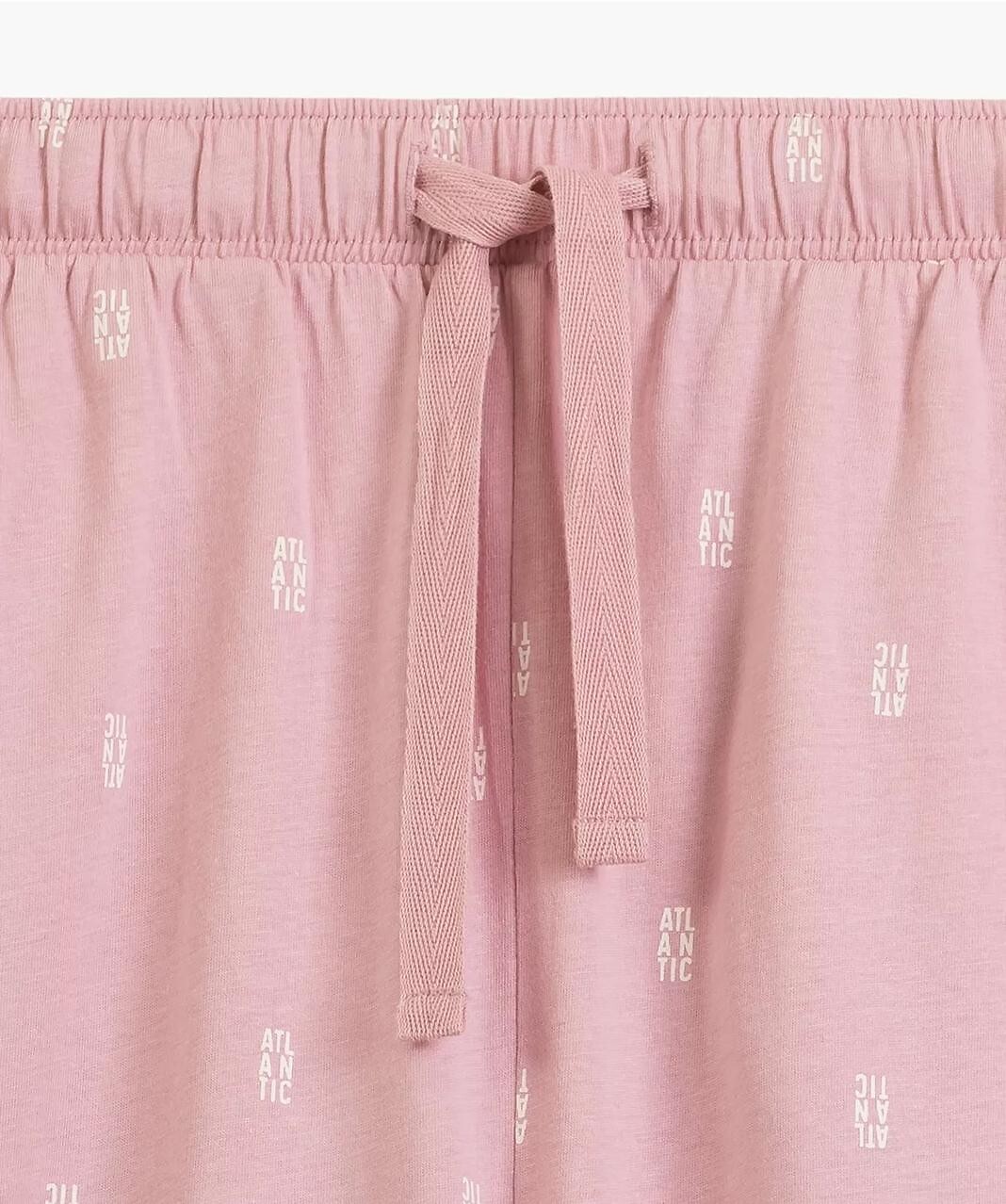 Dámské pyžamo - kvalitní měkká bavlna - jednobarevné tričko s krátkým rukávem - malý nápis ATLANTIC na hrudi - vzorované 3/4 kalhoty - nastavitelná stahovací šňůrka v pase - baleno v plastovém sáčku Složení: 100% bavlna