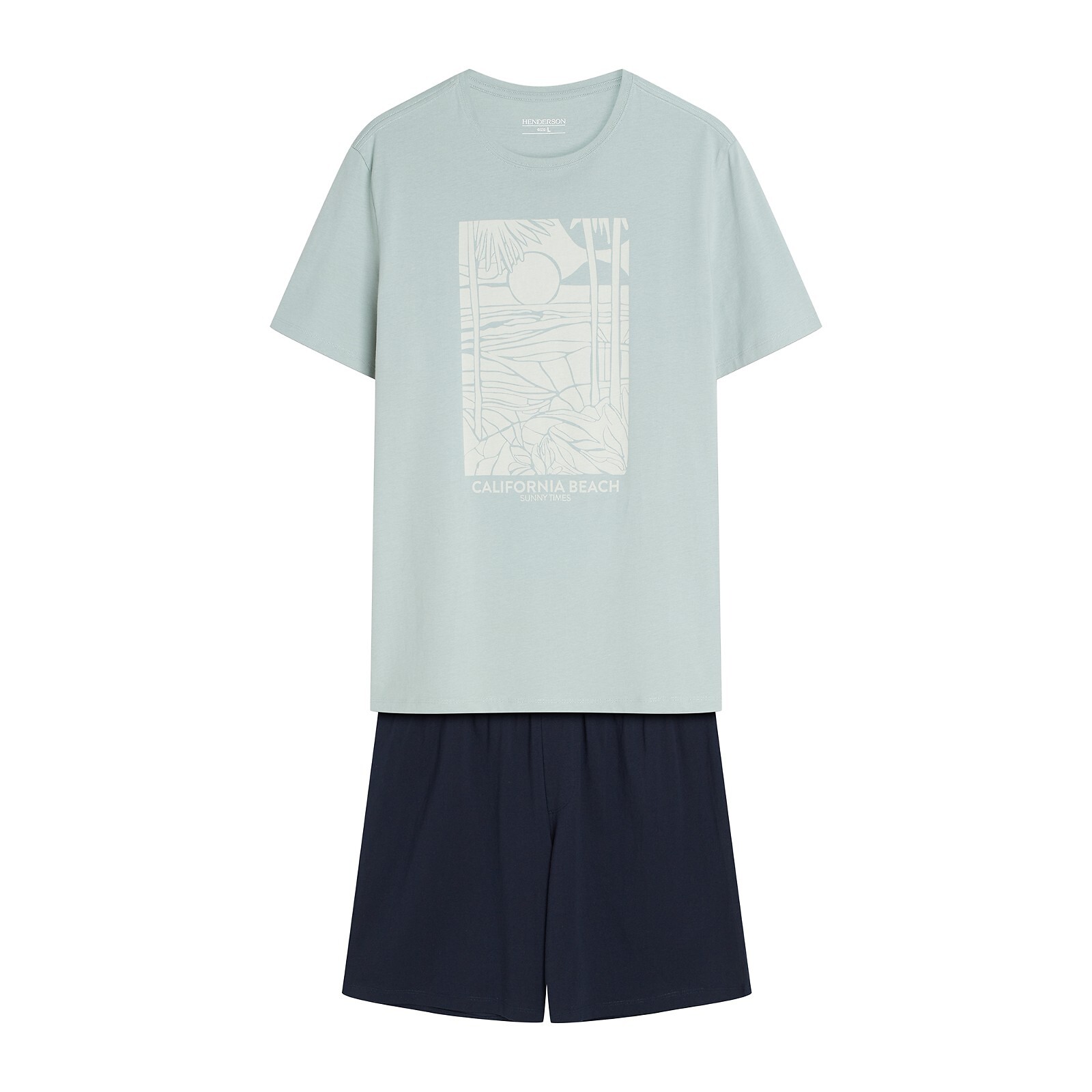 Pánské bavlněné pyžamo - tričko s krátkým rukávem - kulatý výstřih - potisk na přední straně - jednobarevné kraťasy, délka ke kolenům - elastický pas Složení: 100% bavlna