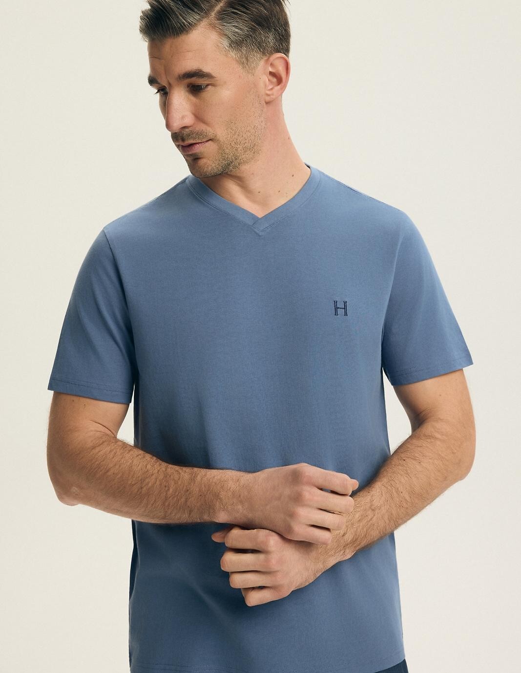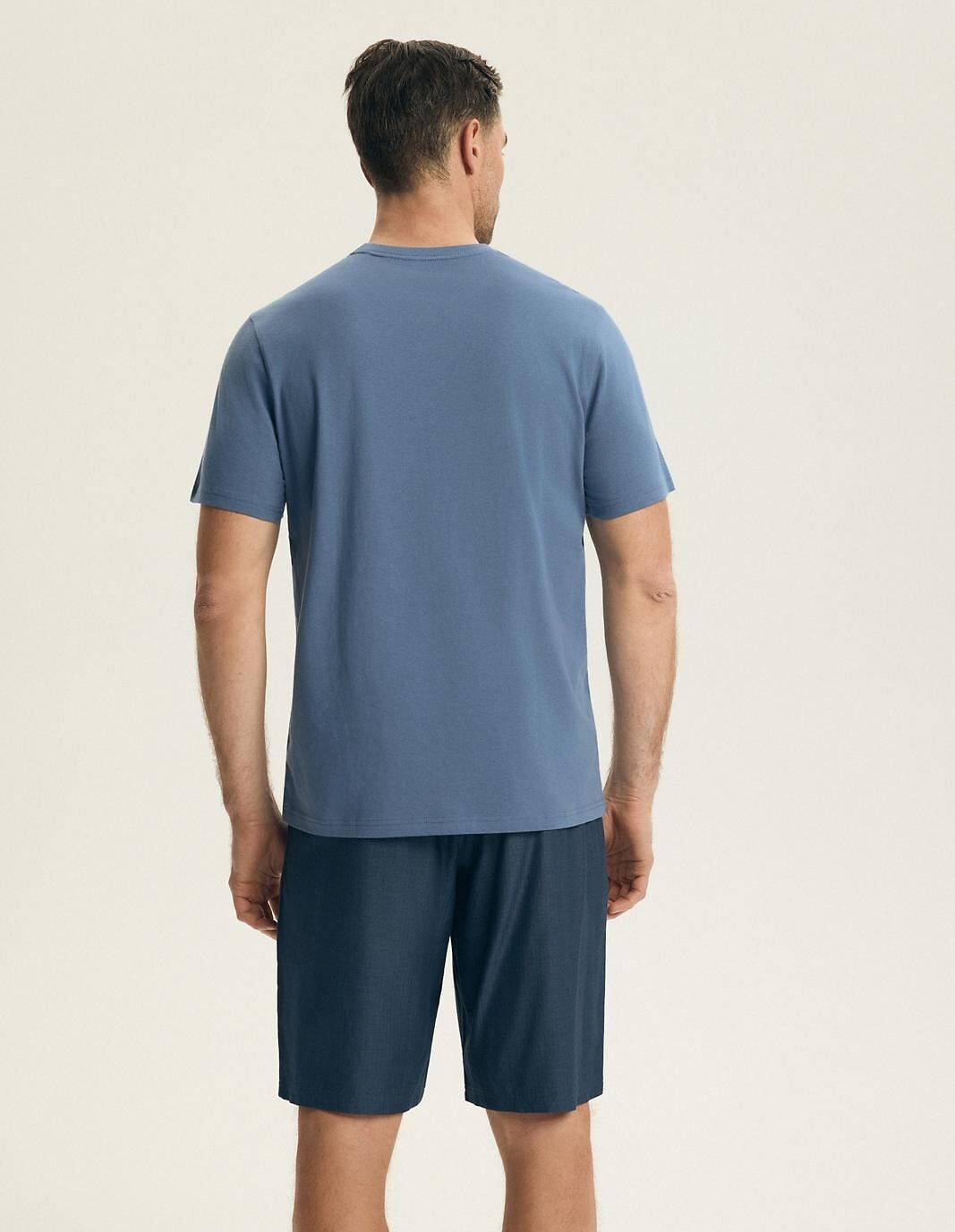 Pánské bavlněné pyžamo - hladké pletené tričko - výstřih do V - kalhoty z tenké bavlněné tkaniny - délka ke kolenům - elastický pas a stahovací šňůrka pro nastavení obvodu pasu Složení: 100% bavlna